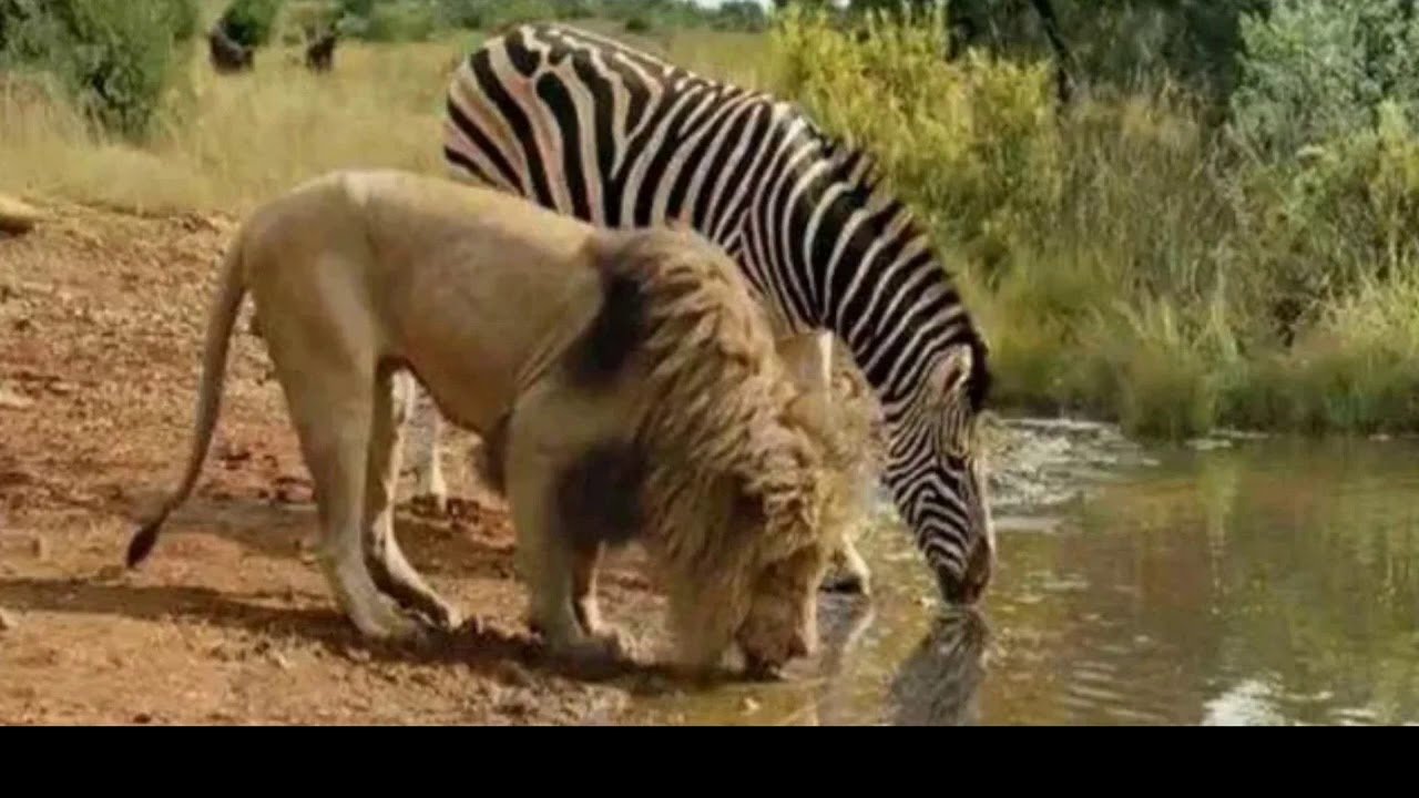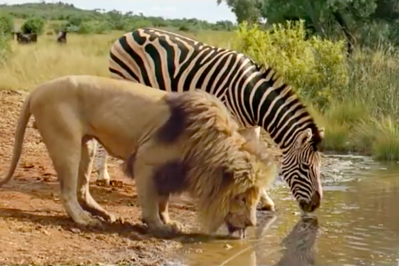 Лев и Зебра на водопое
