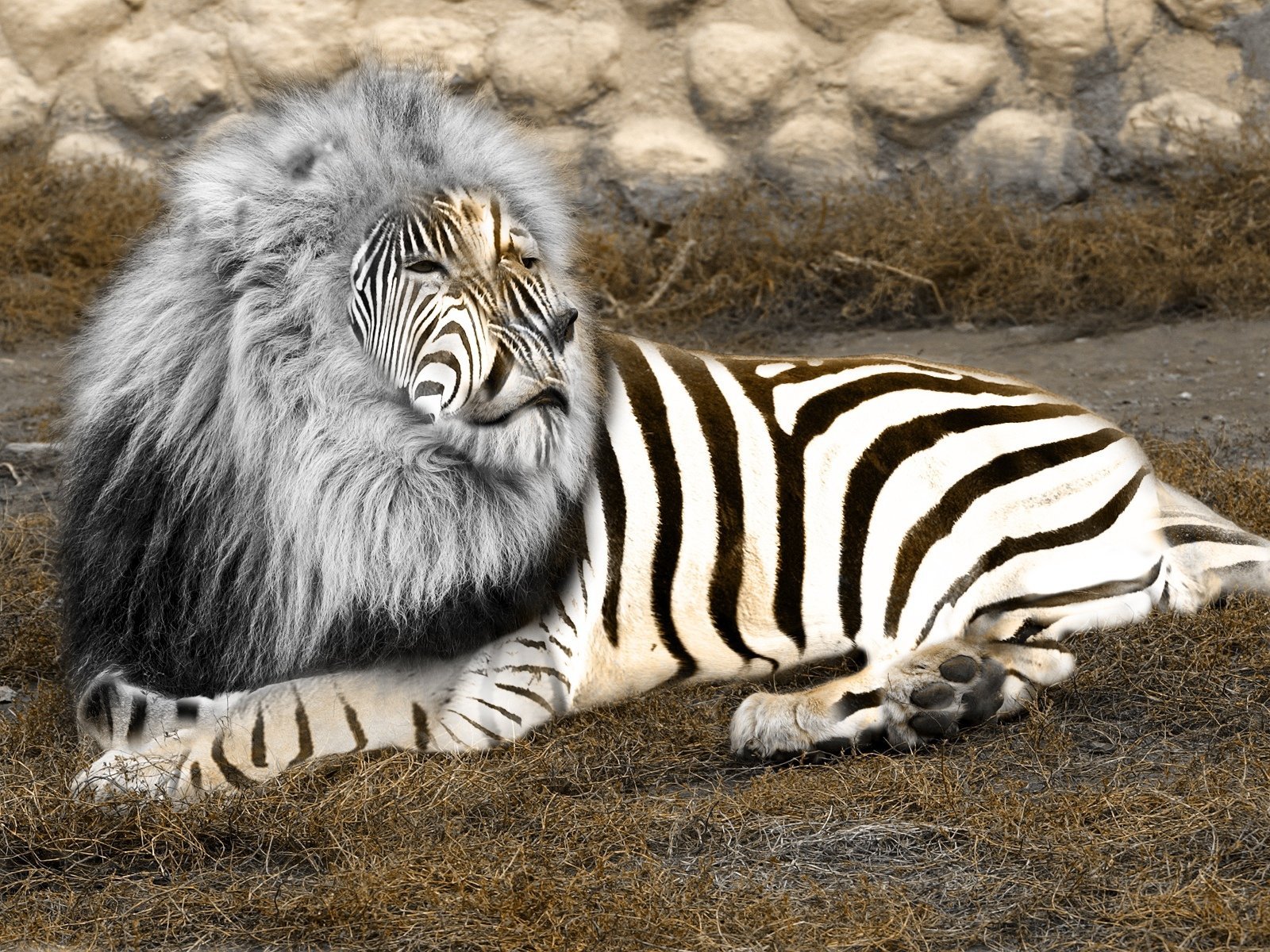 Зебра лягает Льва