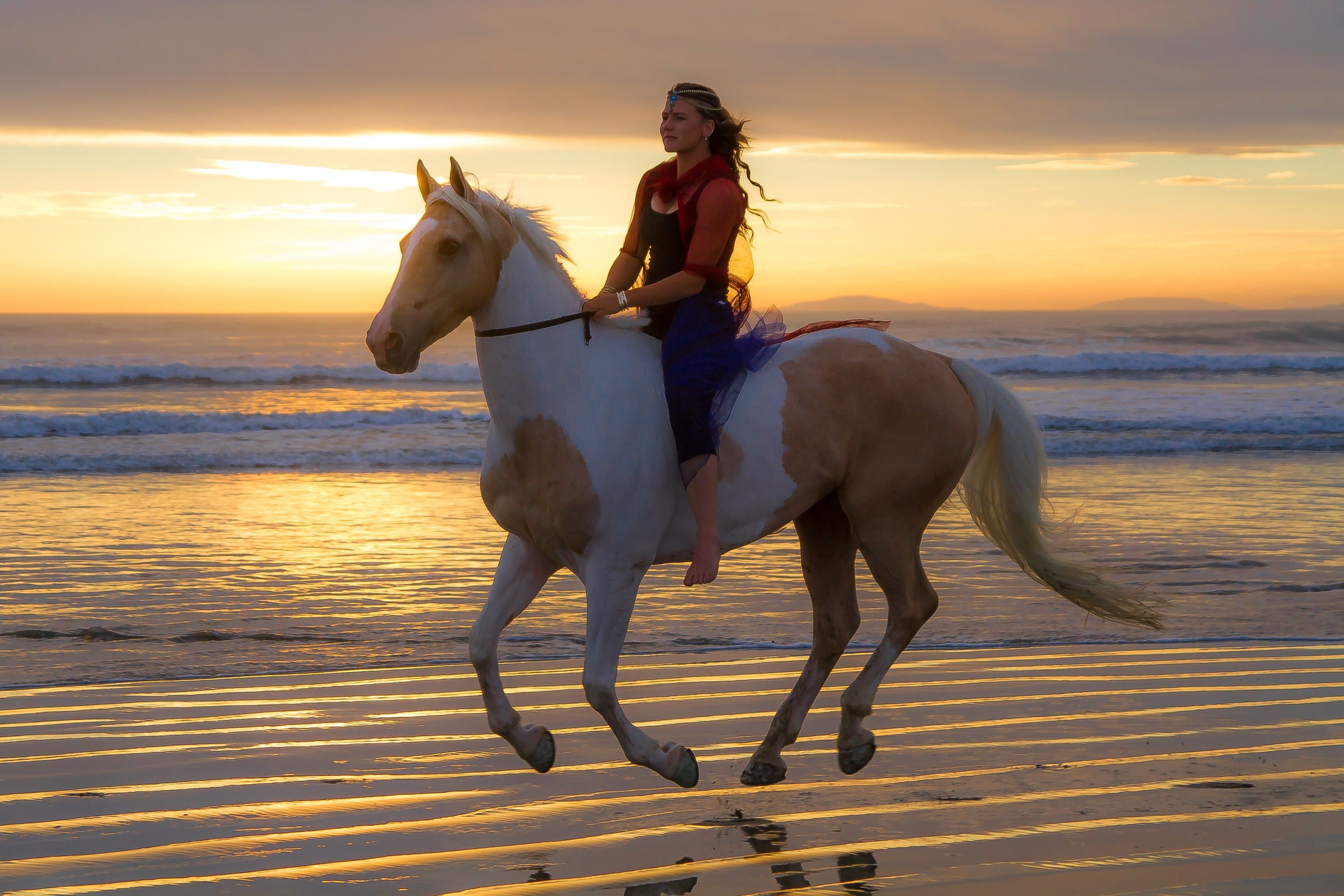 Женщина скачет на лошади