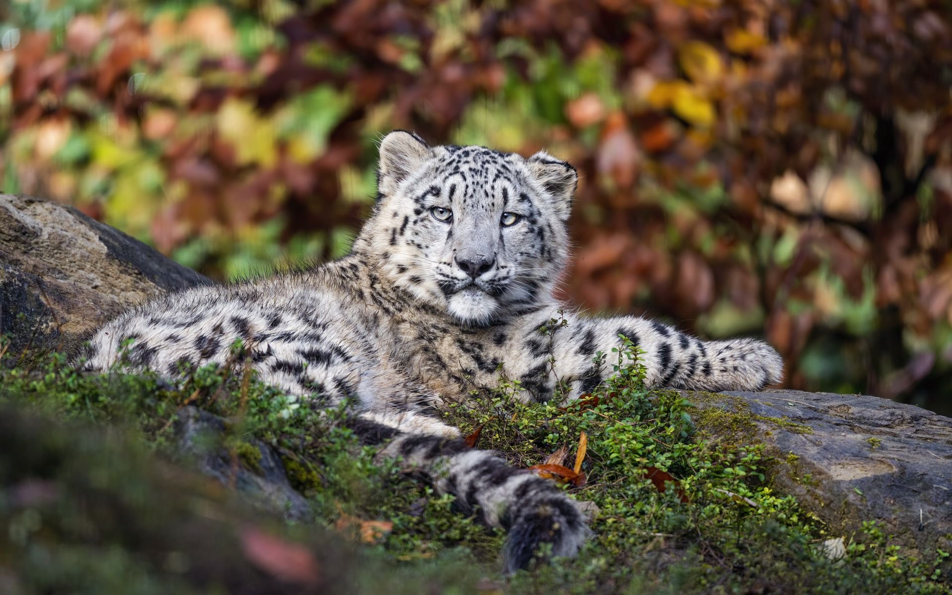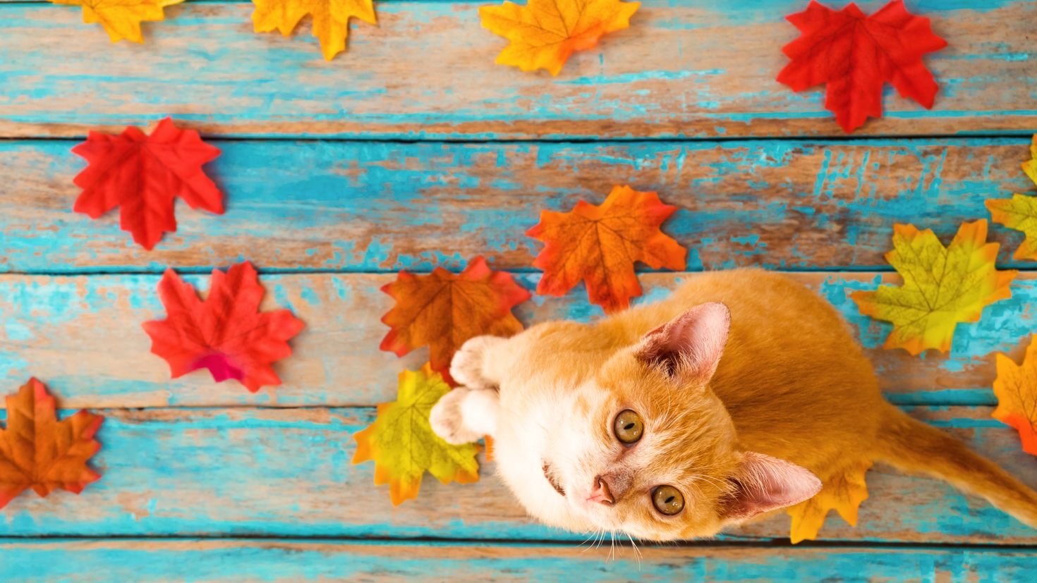 Кошка в осенних листьях