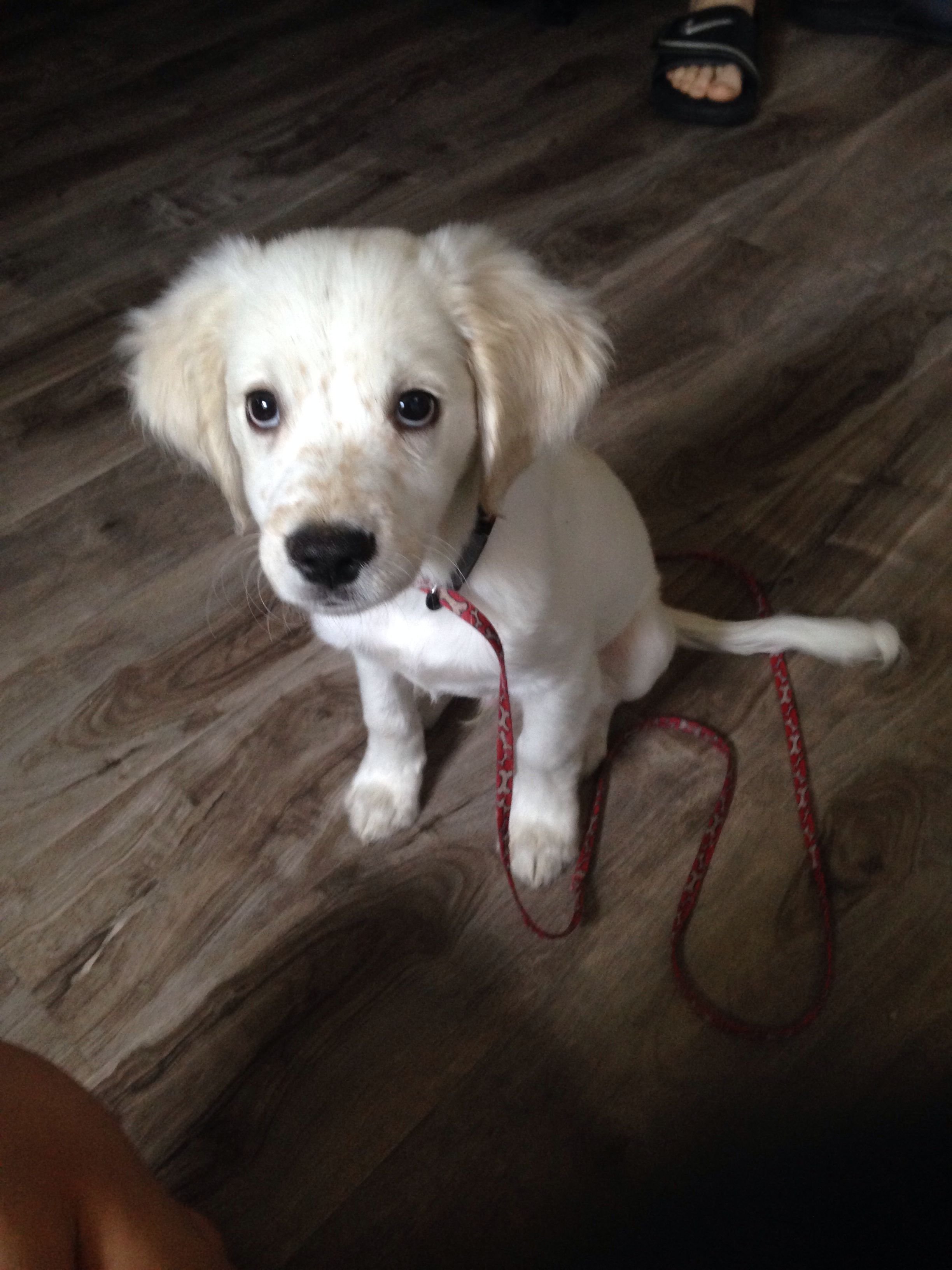 Кокер спаниель лабрадор с белой шерстью пушистый