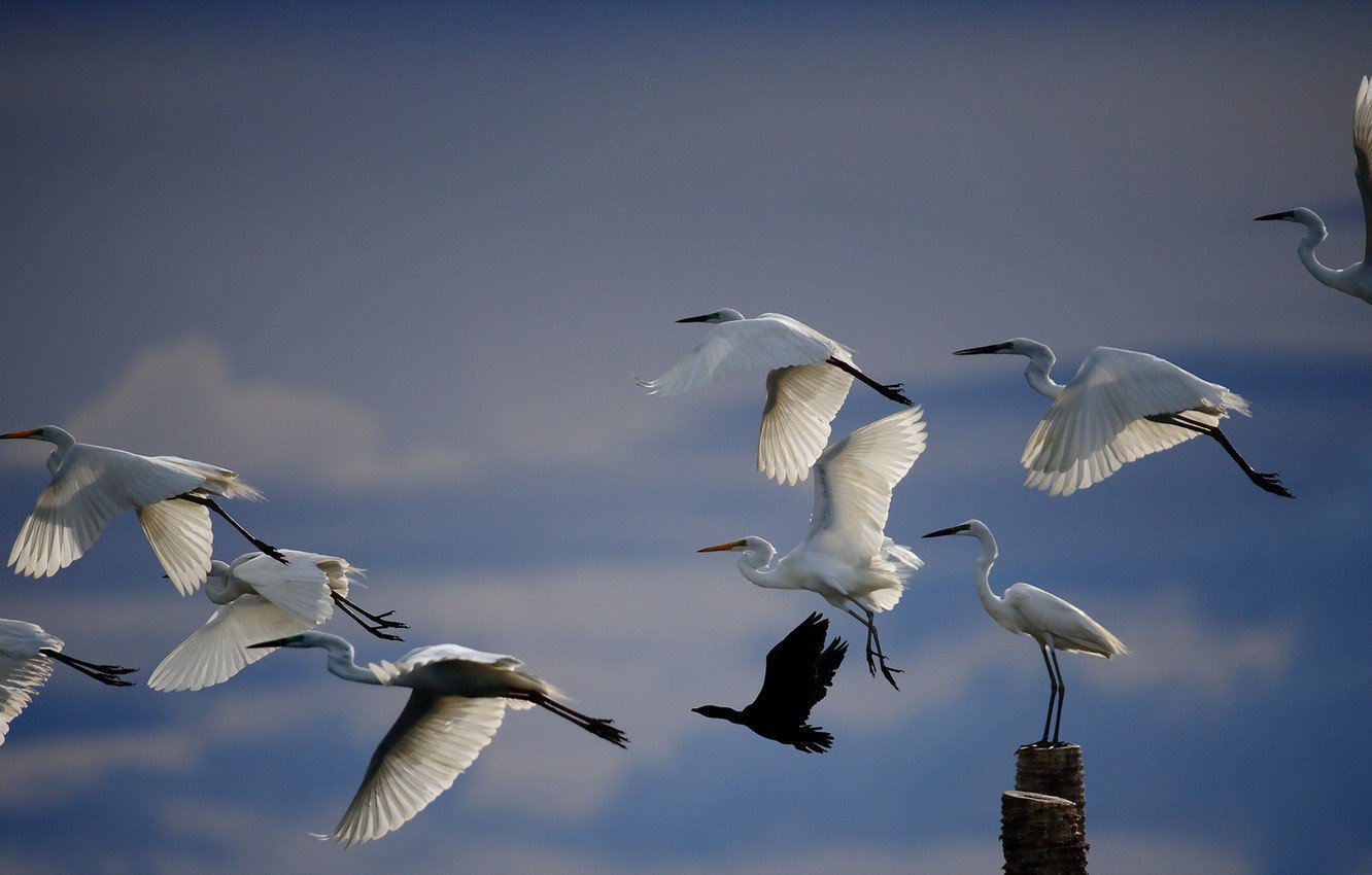 Стая аистов в полете