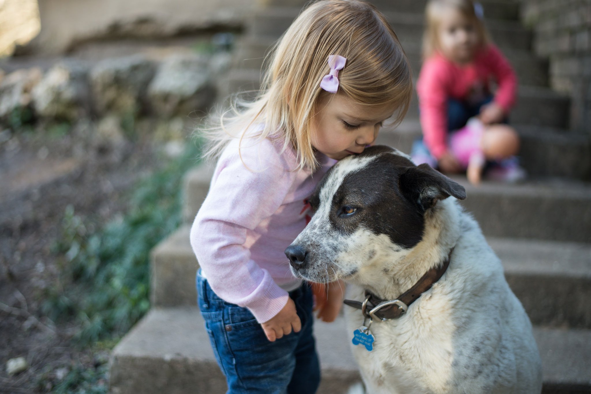 Ребенок обнимает собаку