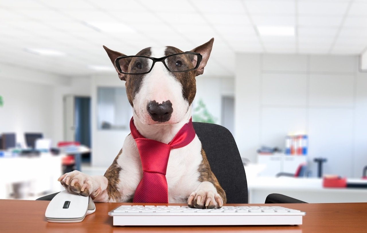 Собака в деловом костюме