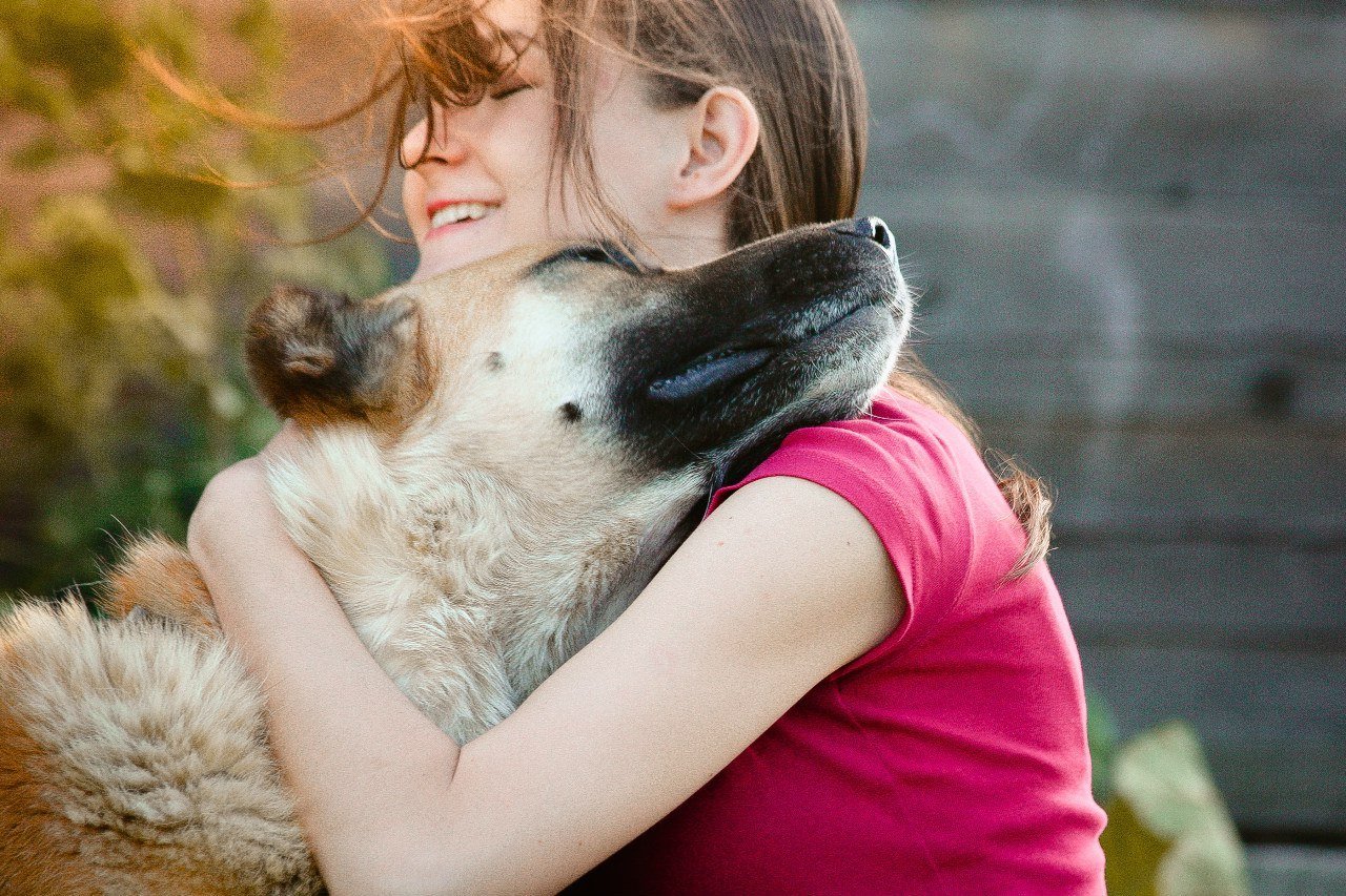 Девушка с собакой на руках