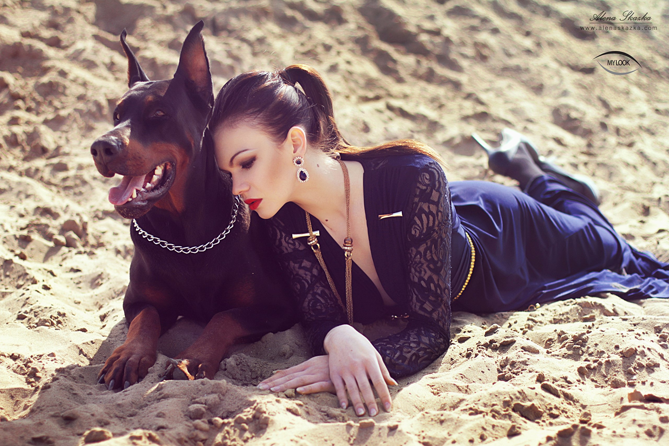 Зои Дойч с доберманом