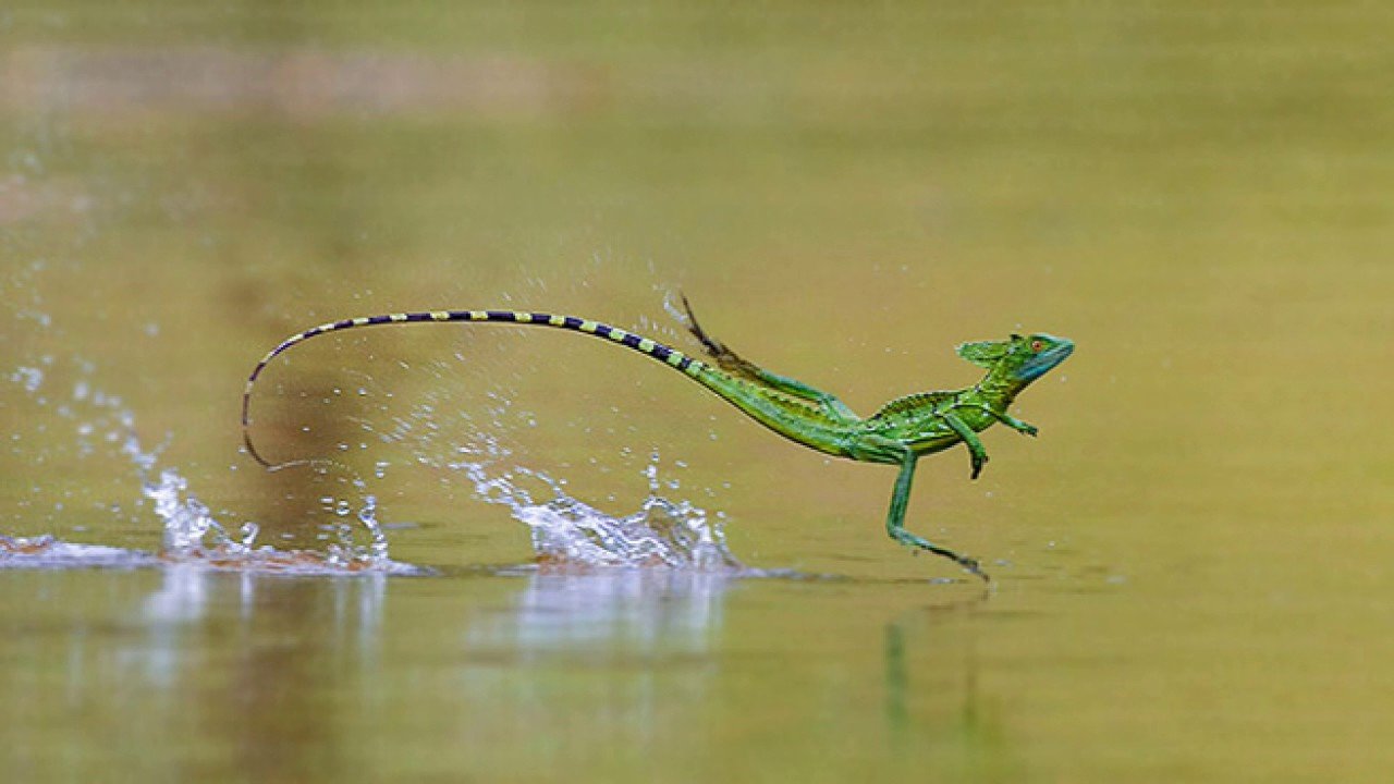 Геккон бегает по воде