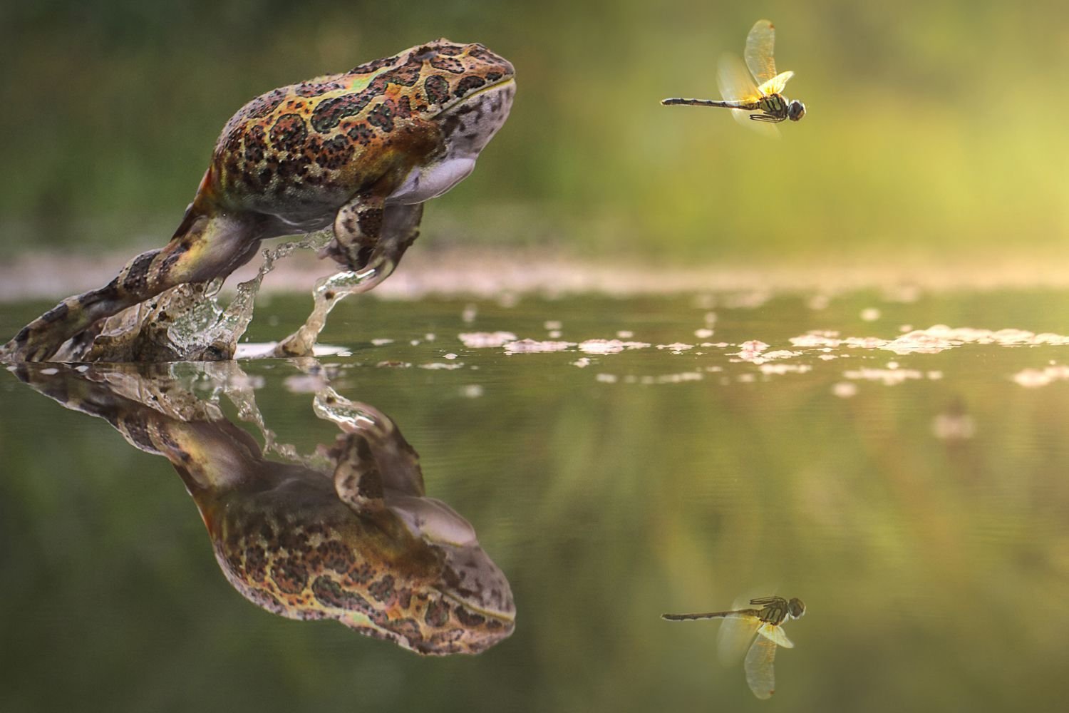 Лягушки в прыжке за комаром