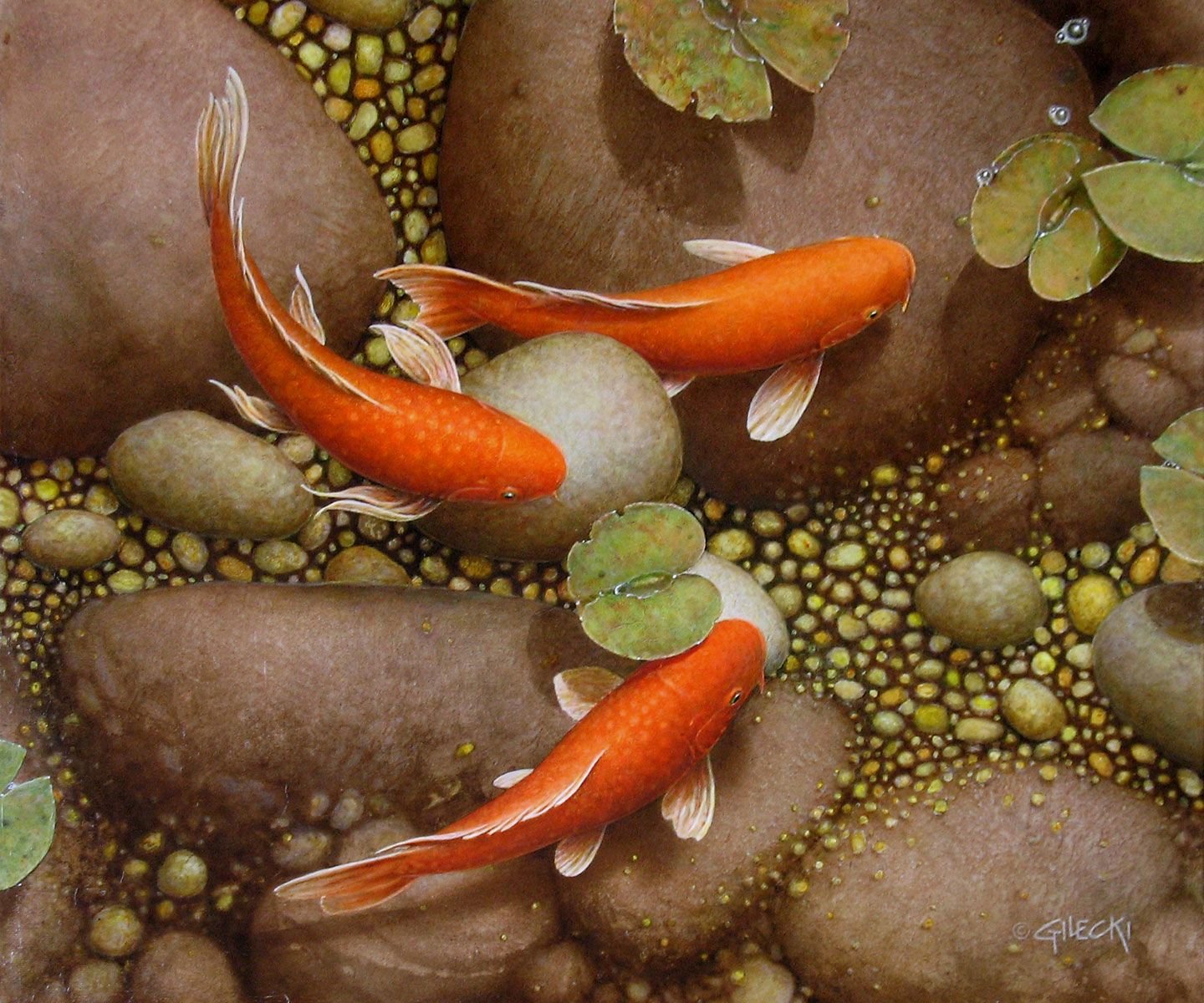Японские карпы кои картины Каданцева
