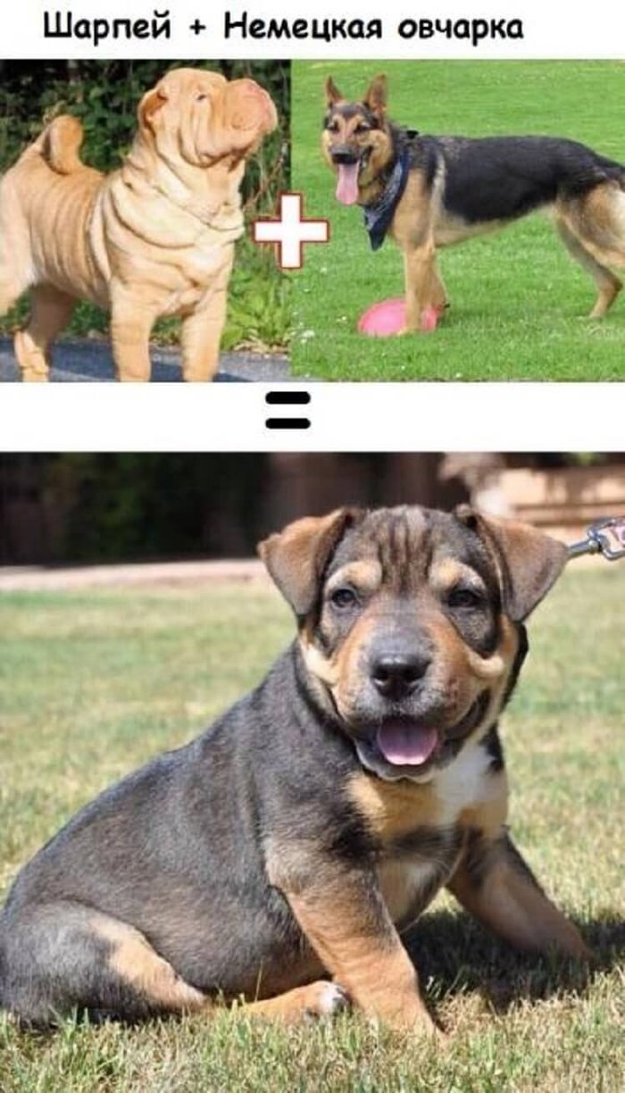 Шарпей с овчаркой