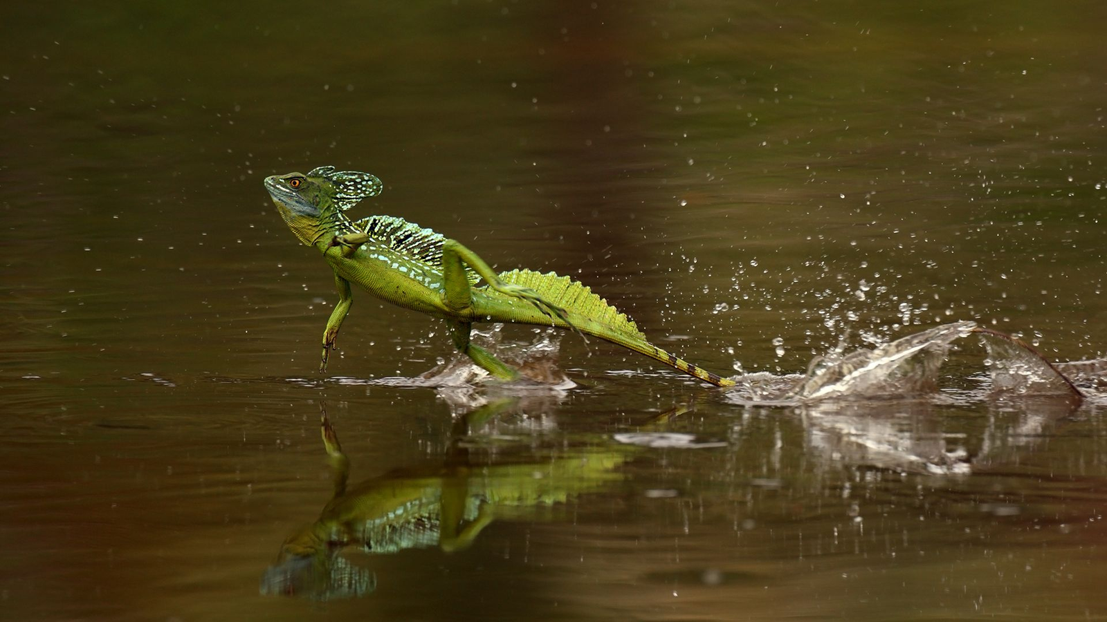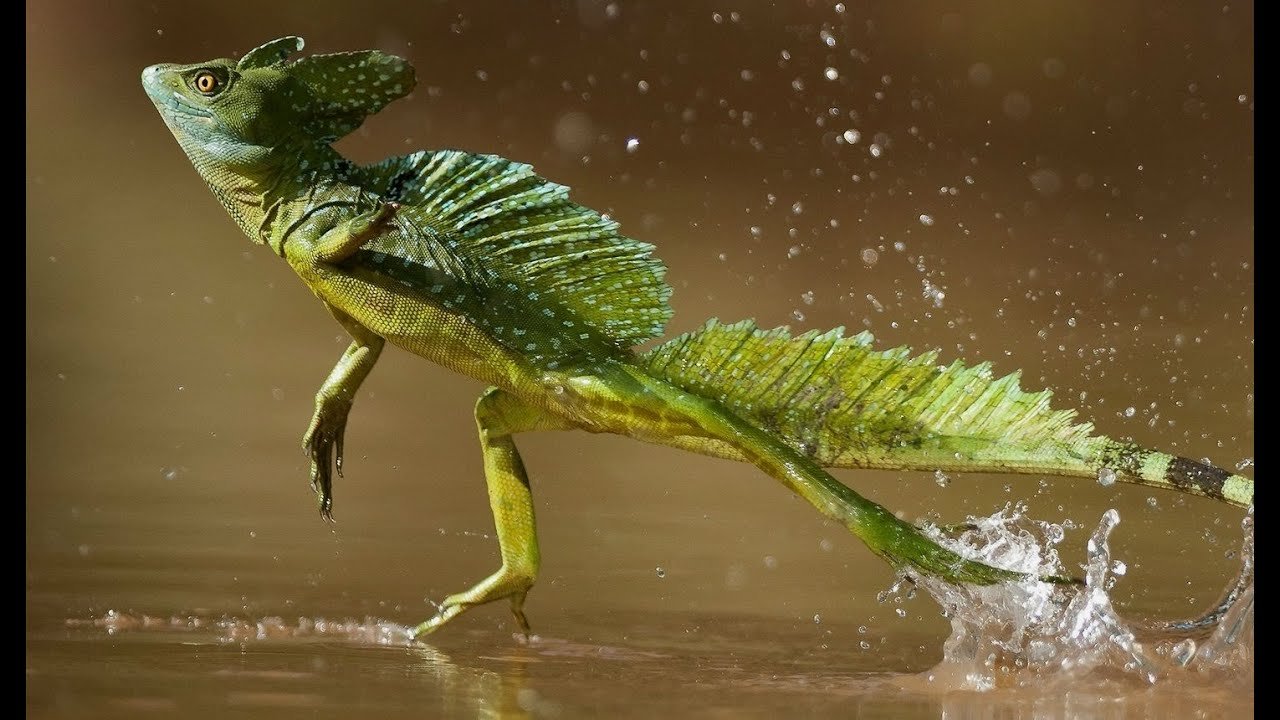 Шлемоносный Василиск бегает по воде