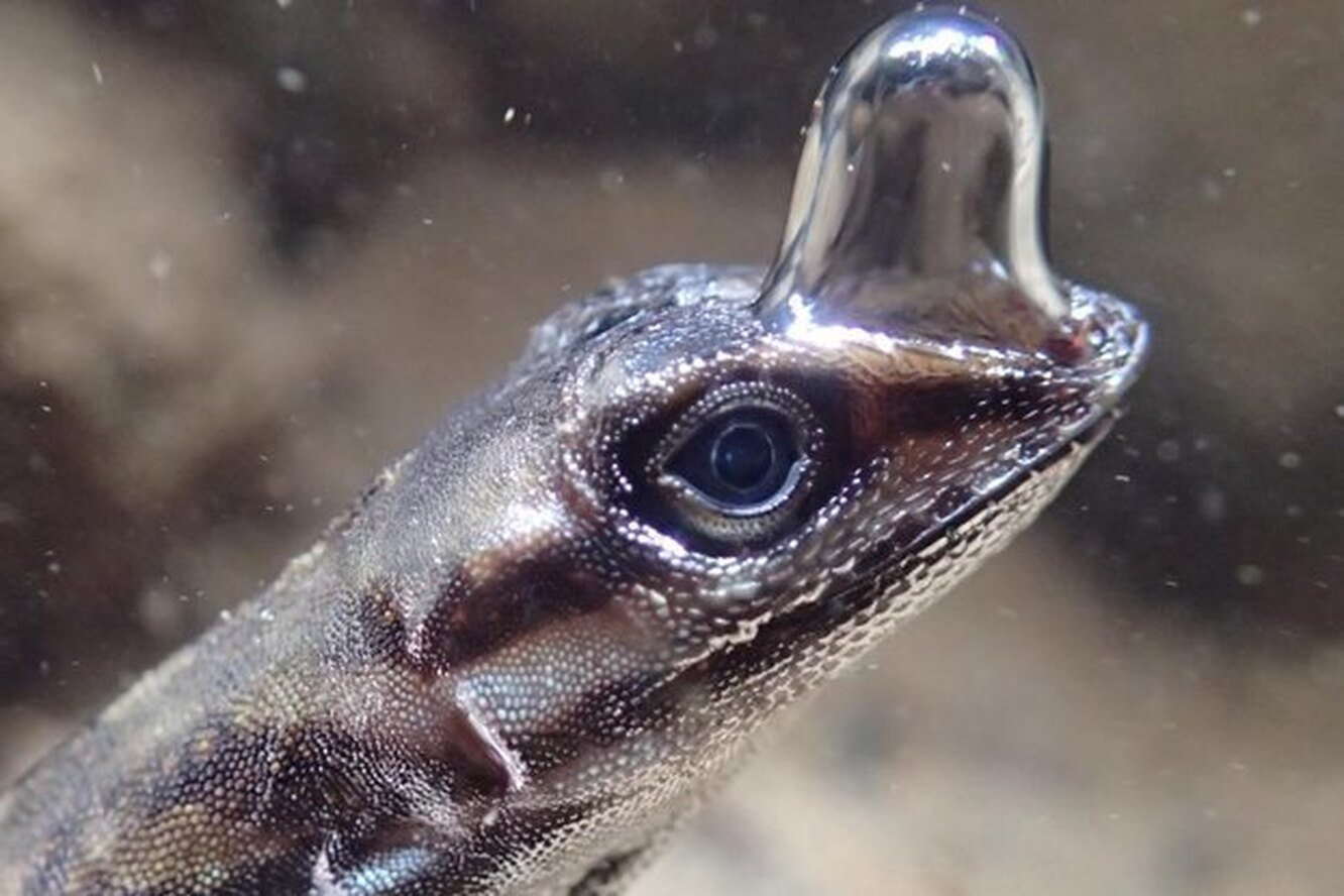 Ящерица плавает в воде