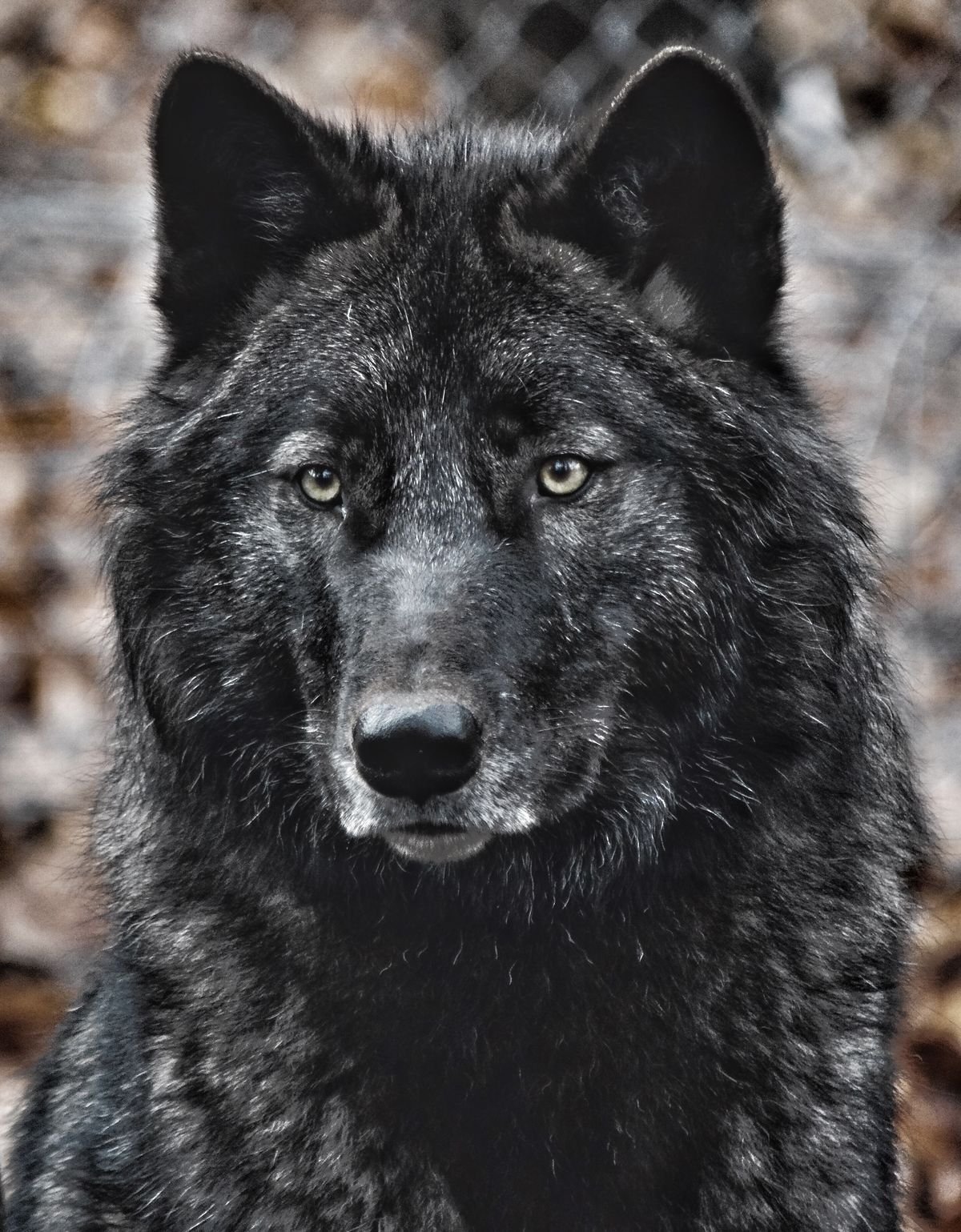 Черный волк с синими глазами