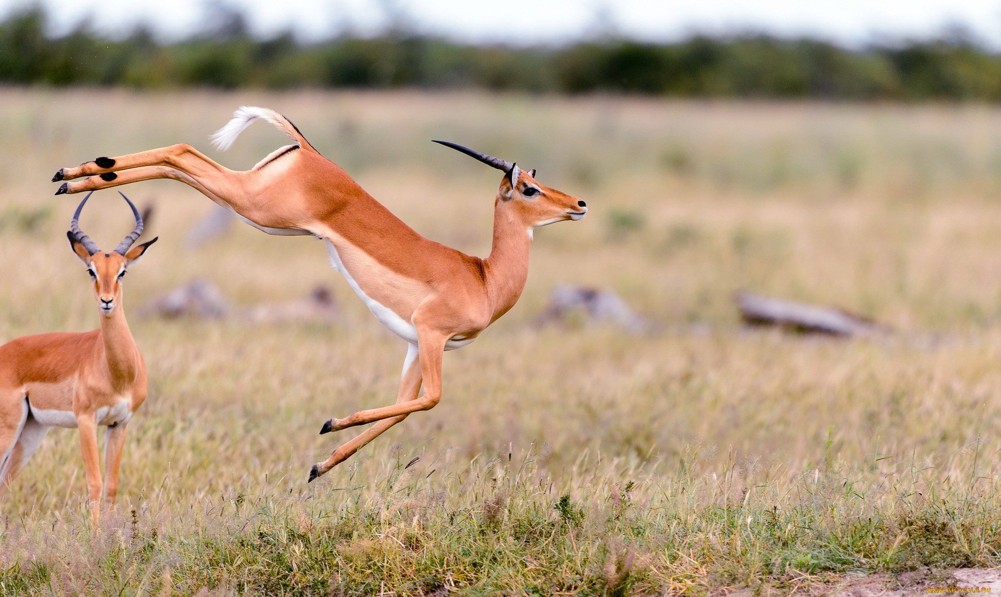 Антилопа Импала прыгает