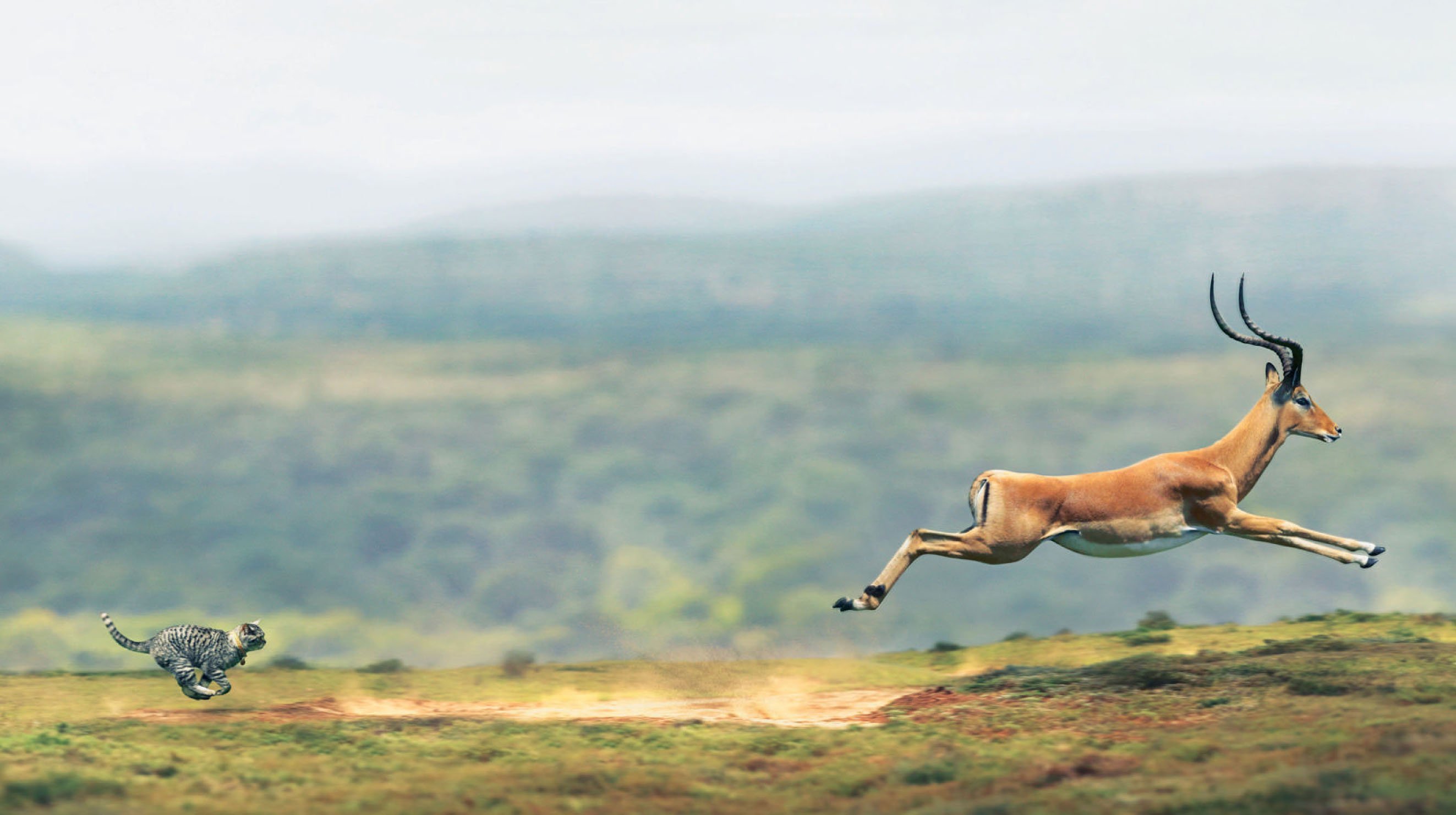 Лев гонится за газелью
