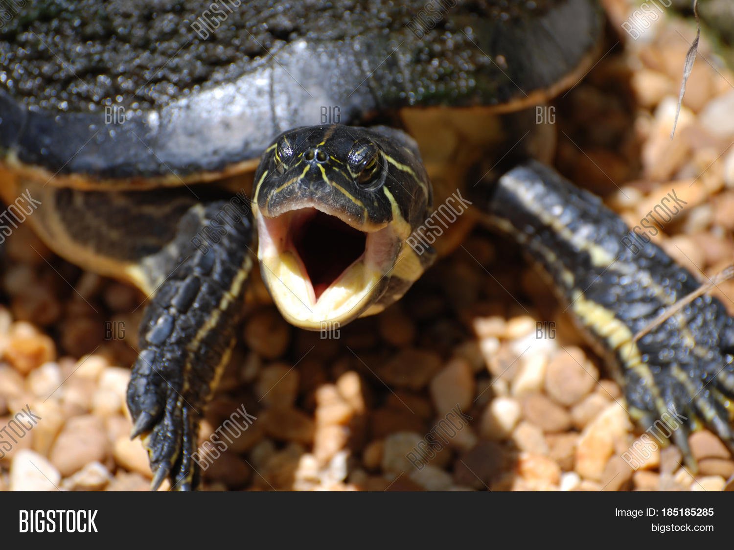 Рот черепахи открытый красноухой