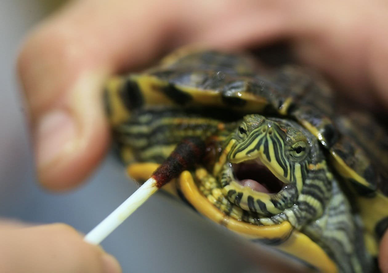 Рот красноухой черепахи