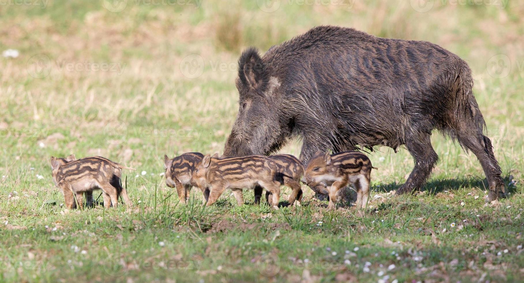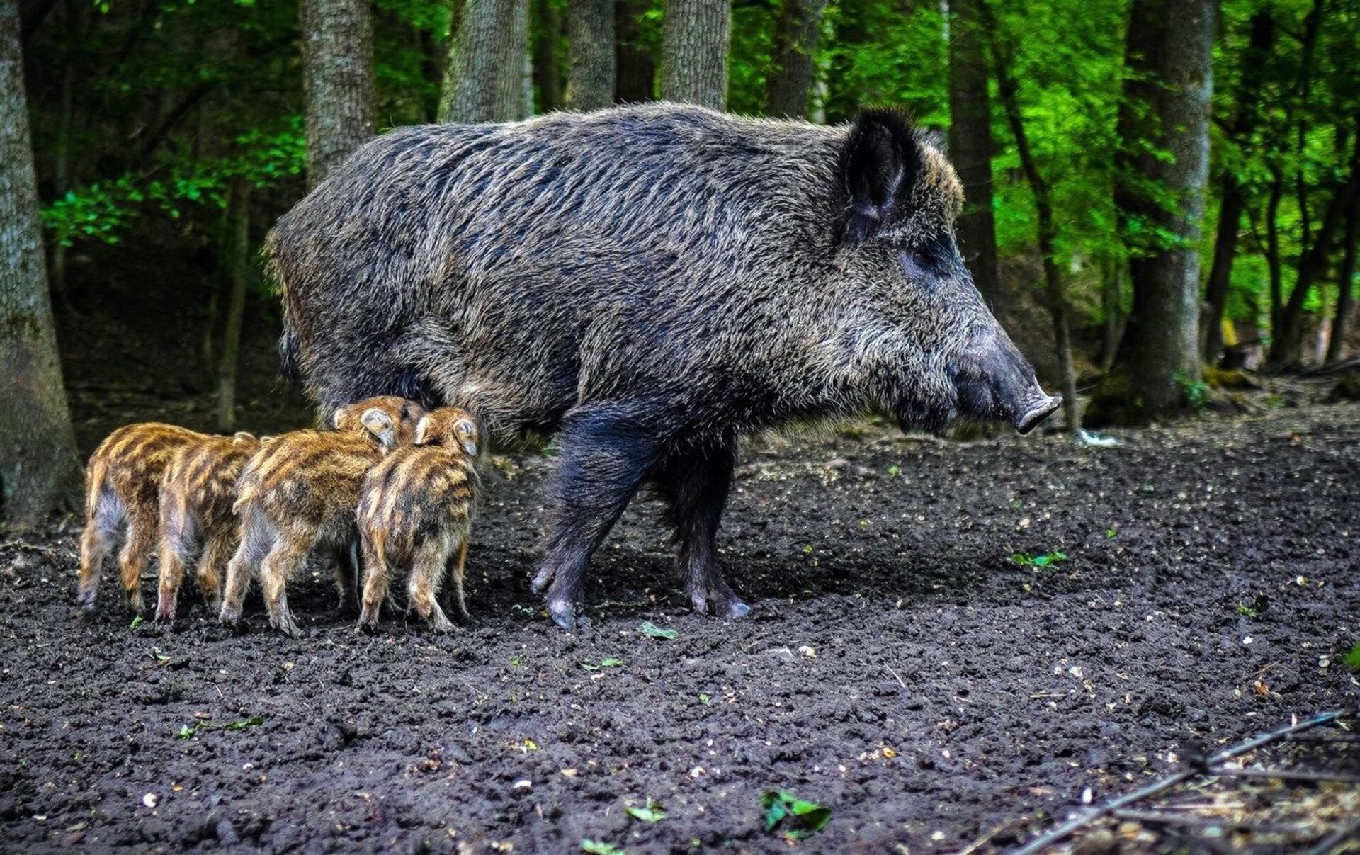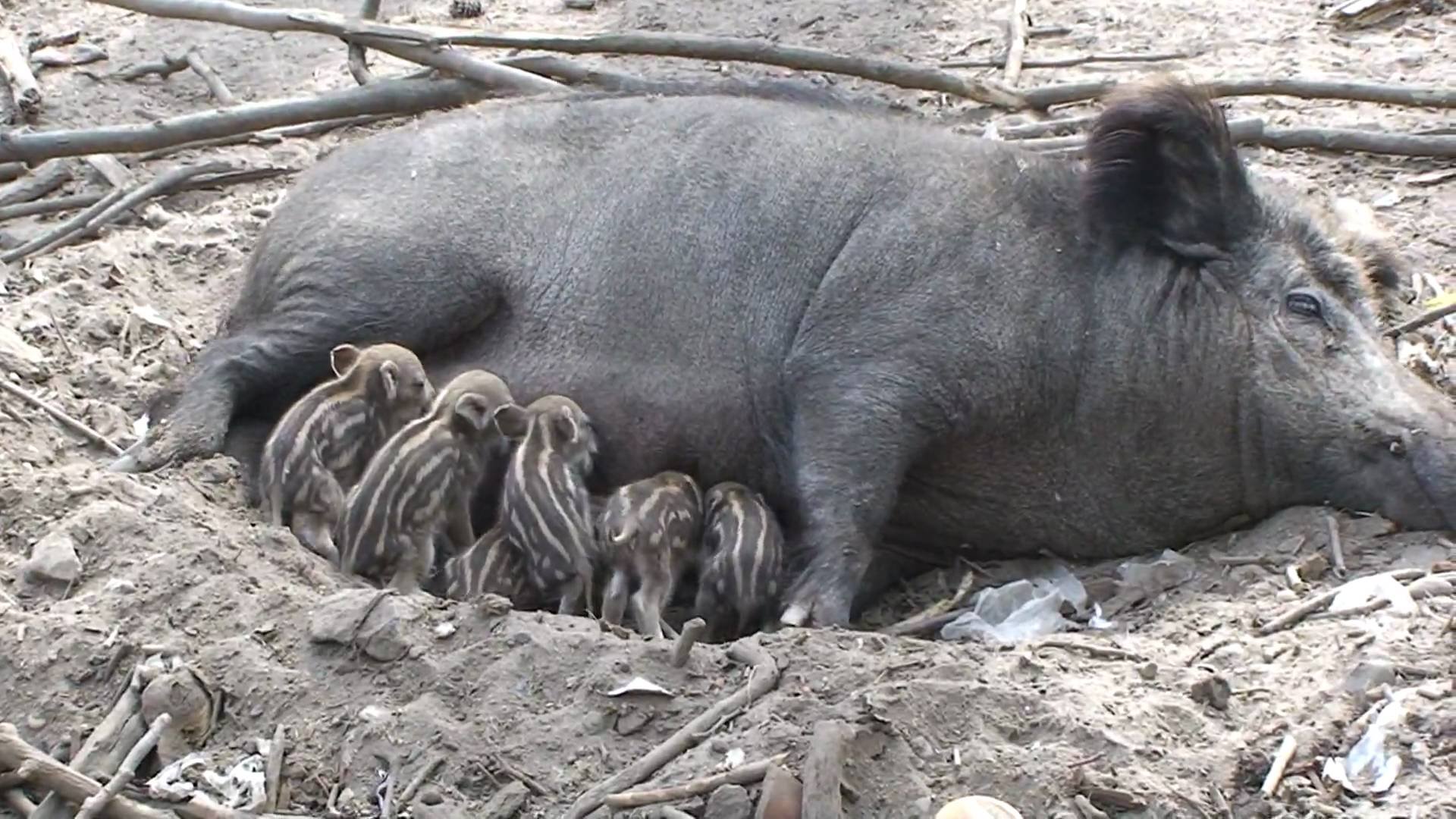 Дикий кабан с кабанятами