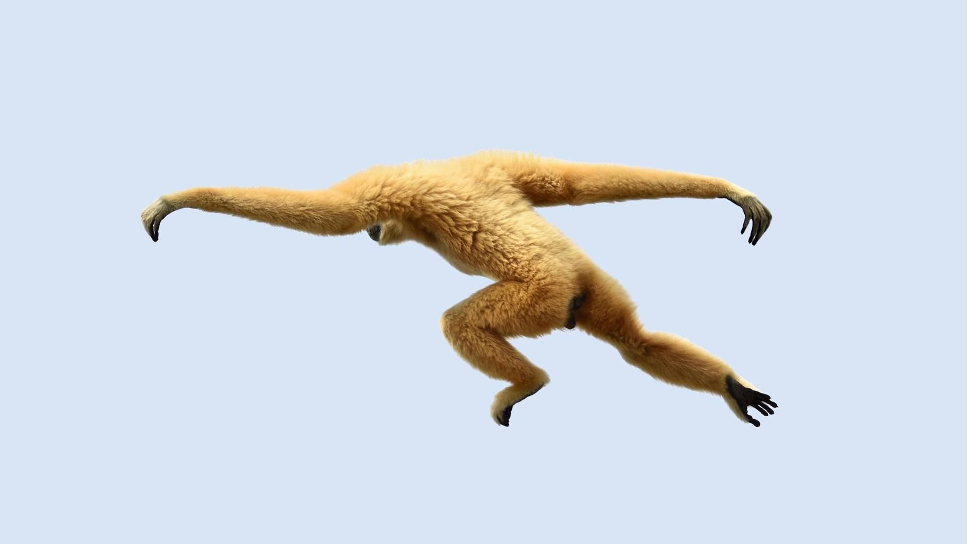 Гиббон прыгает