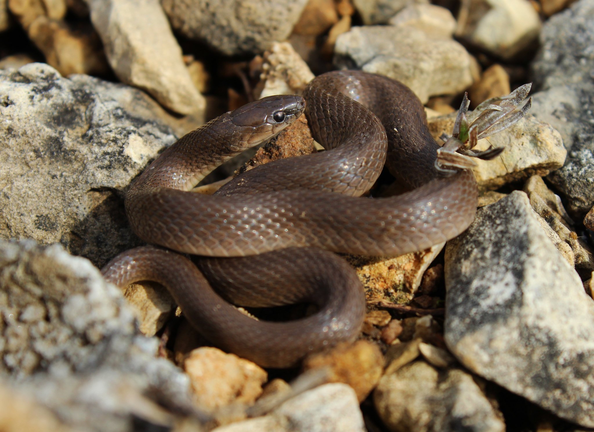 Коричневая змея с черной головой