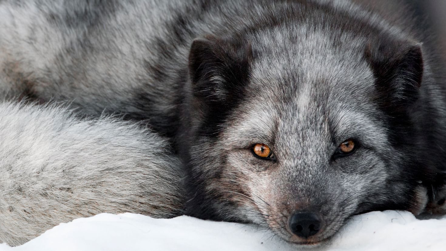 Чернобурая лисица зимой