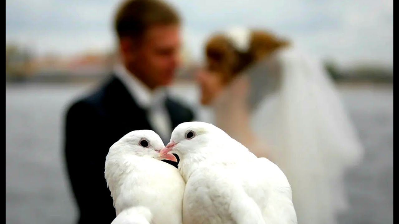Свадебные голуби в небе
