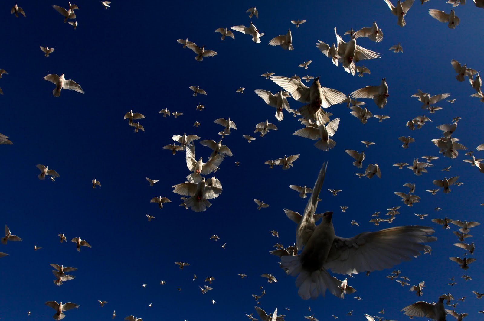 Стая белых голубей