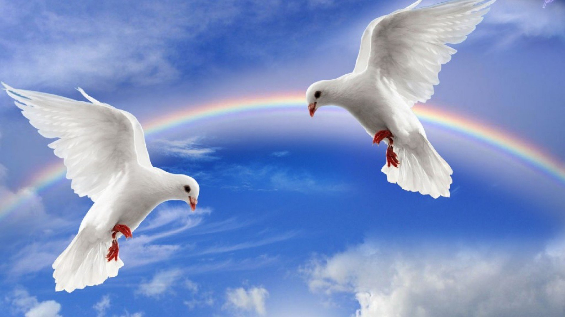 Два белых голубя в небе