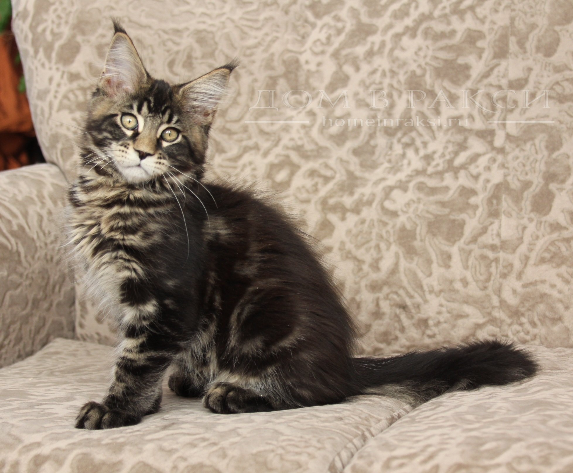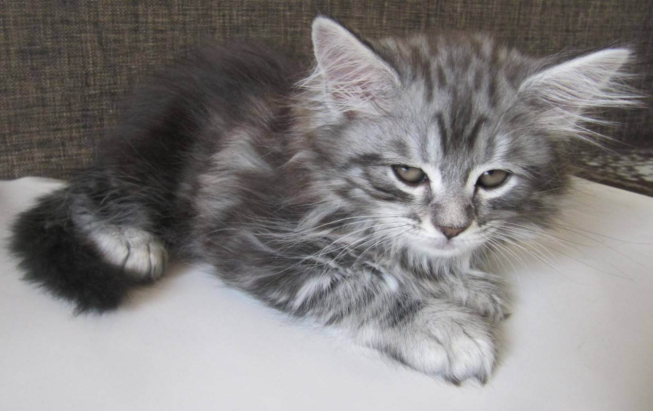 Метис Мейн кун серый котенок