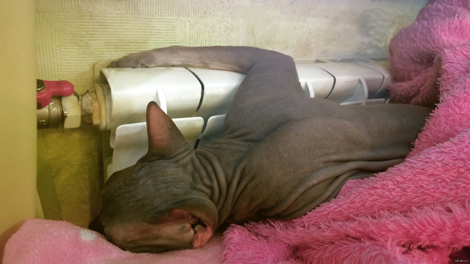 Сонный лысый кот