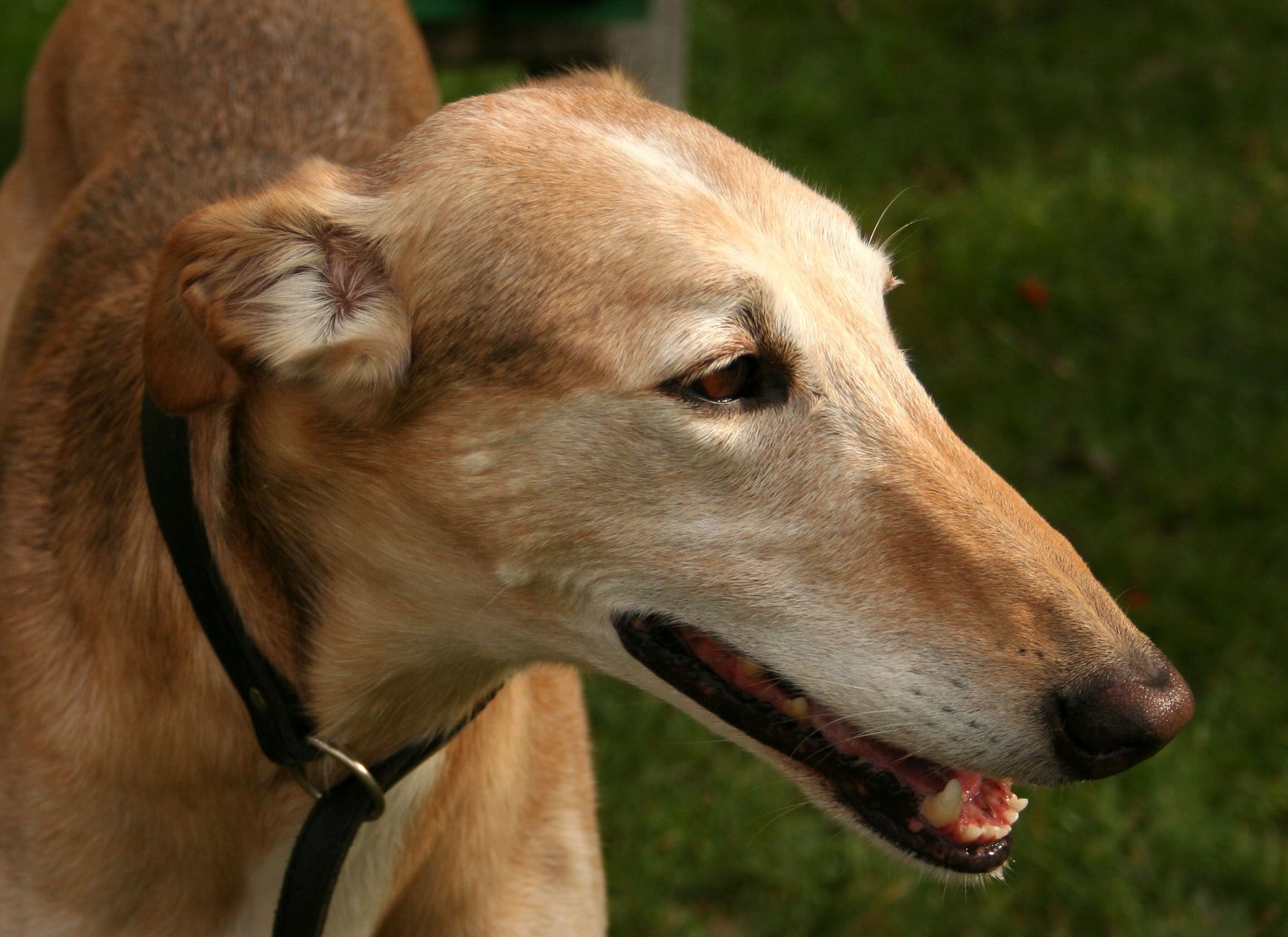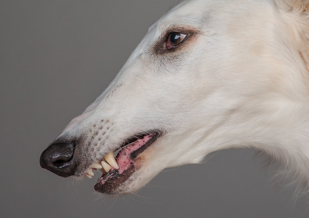 Русская псовая борзая скалится