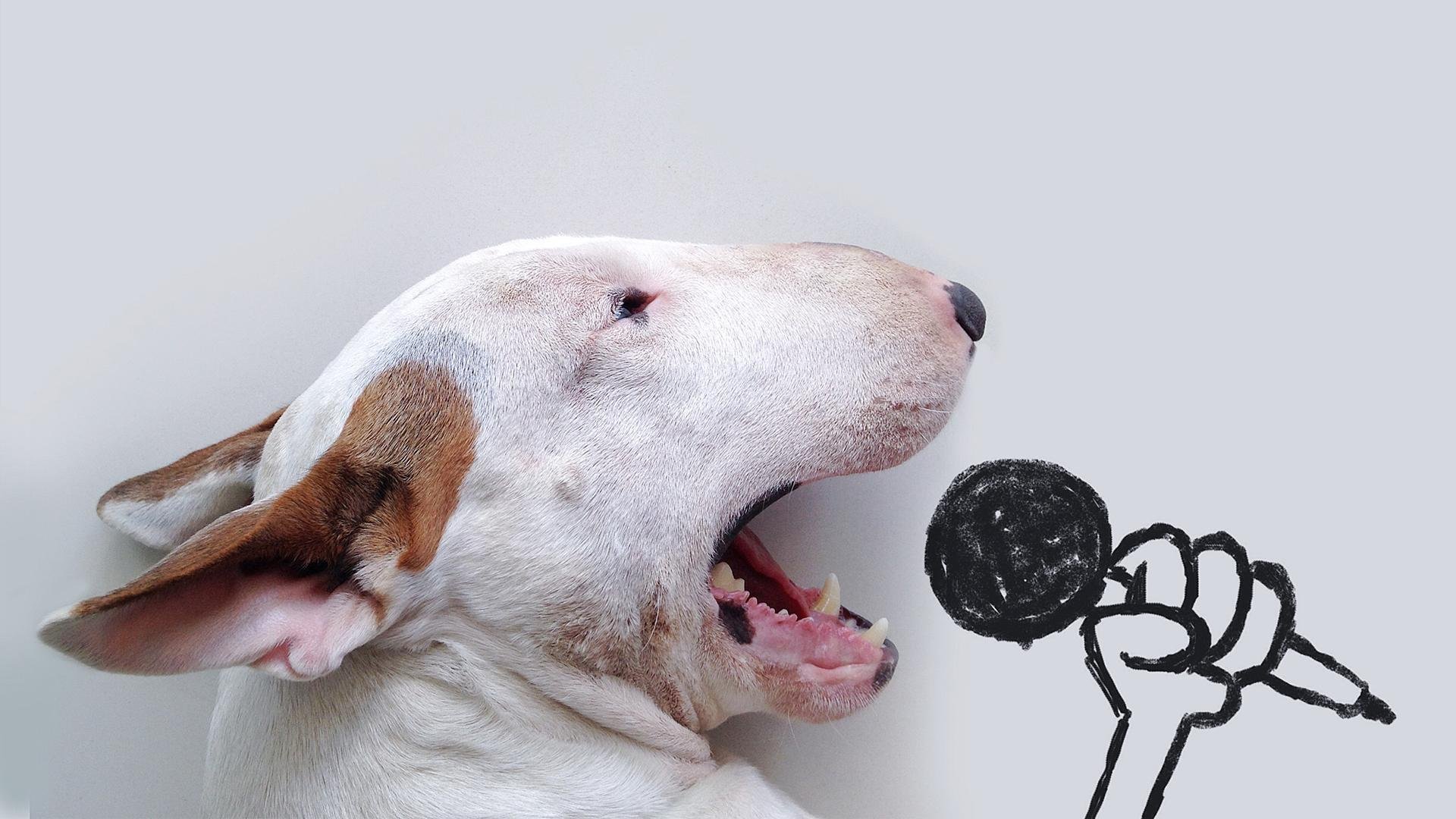 Бультерьер лает