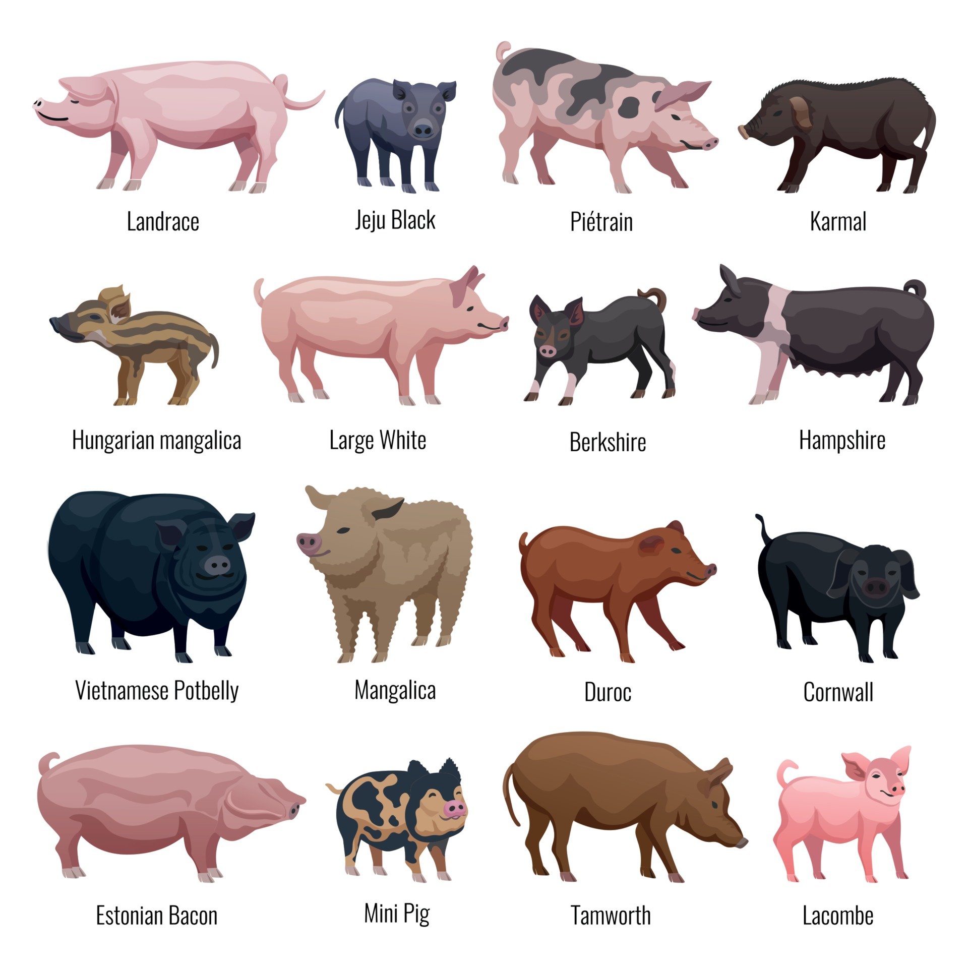 Породы свиней на одной картине