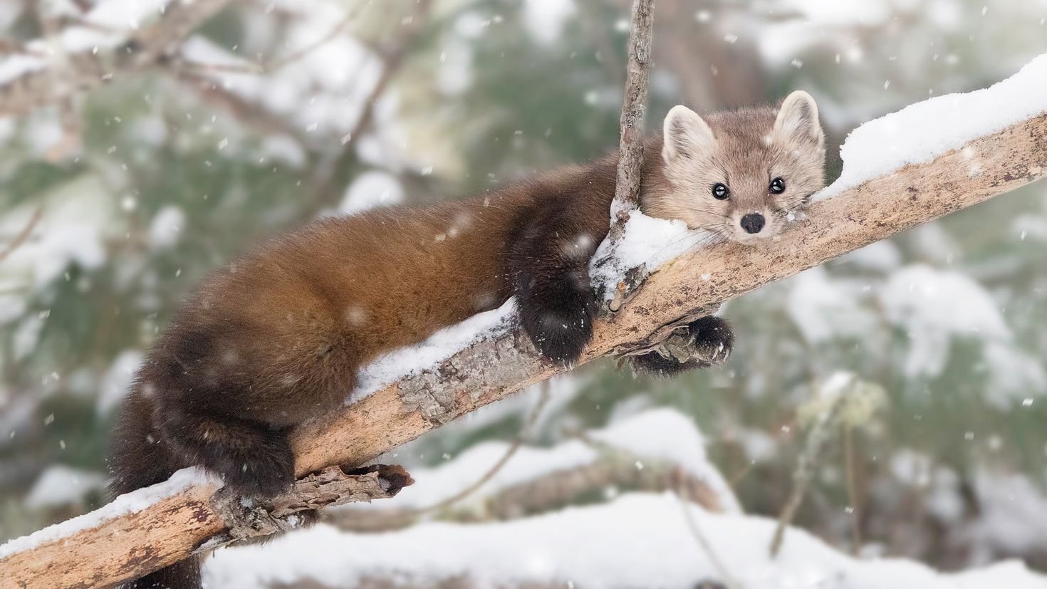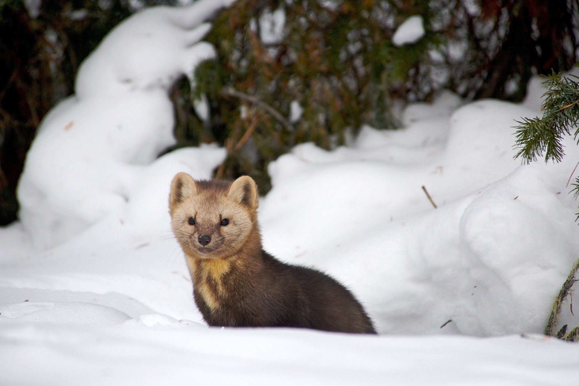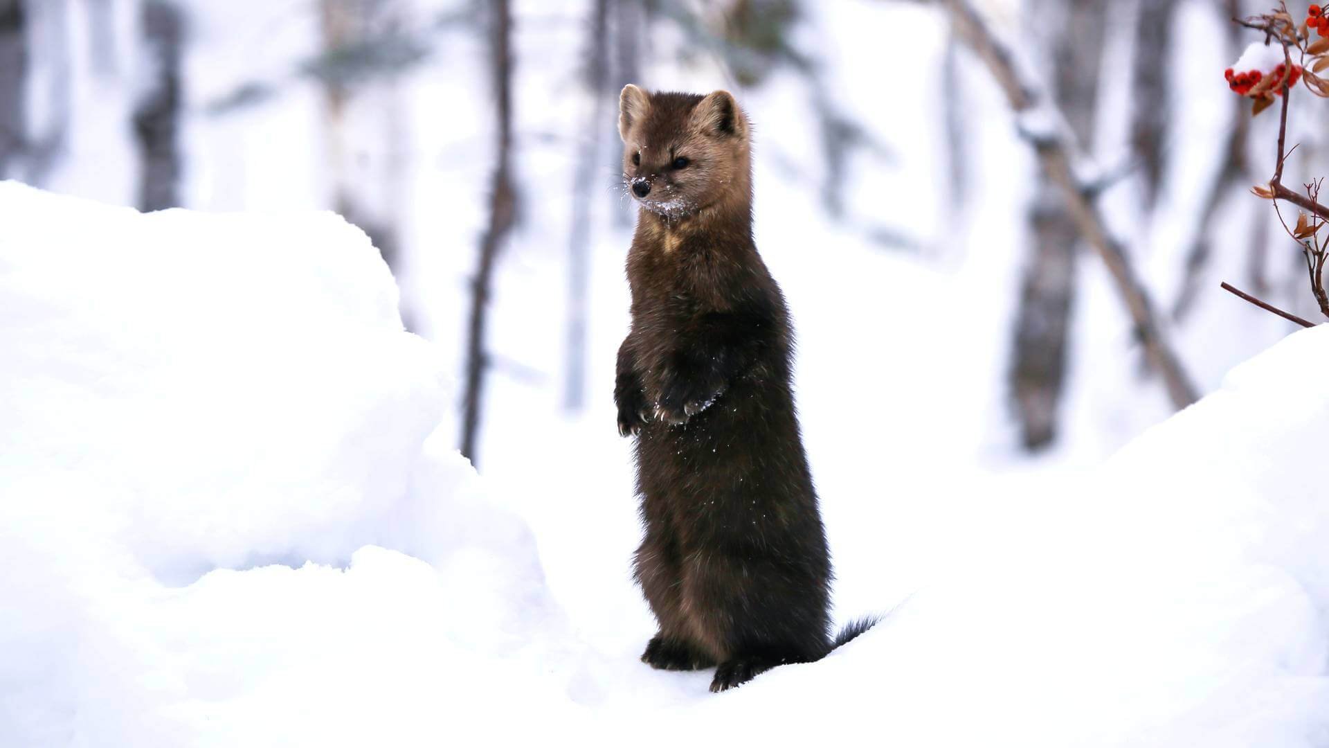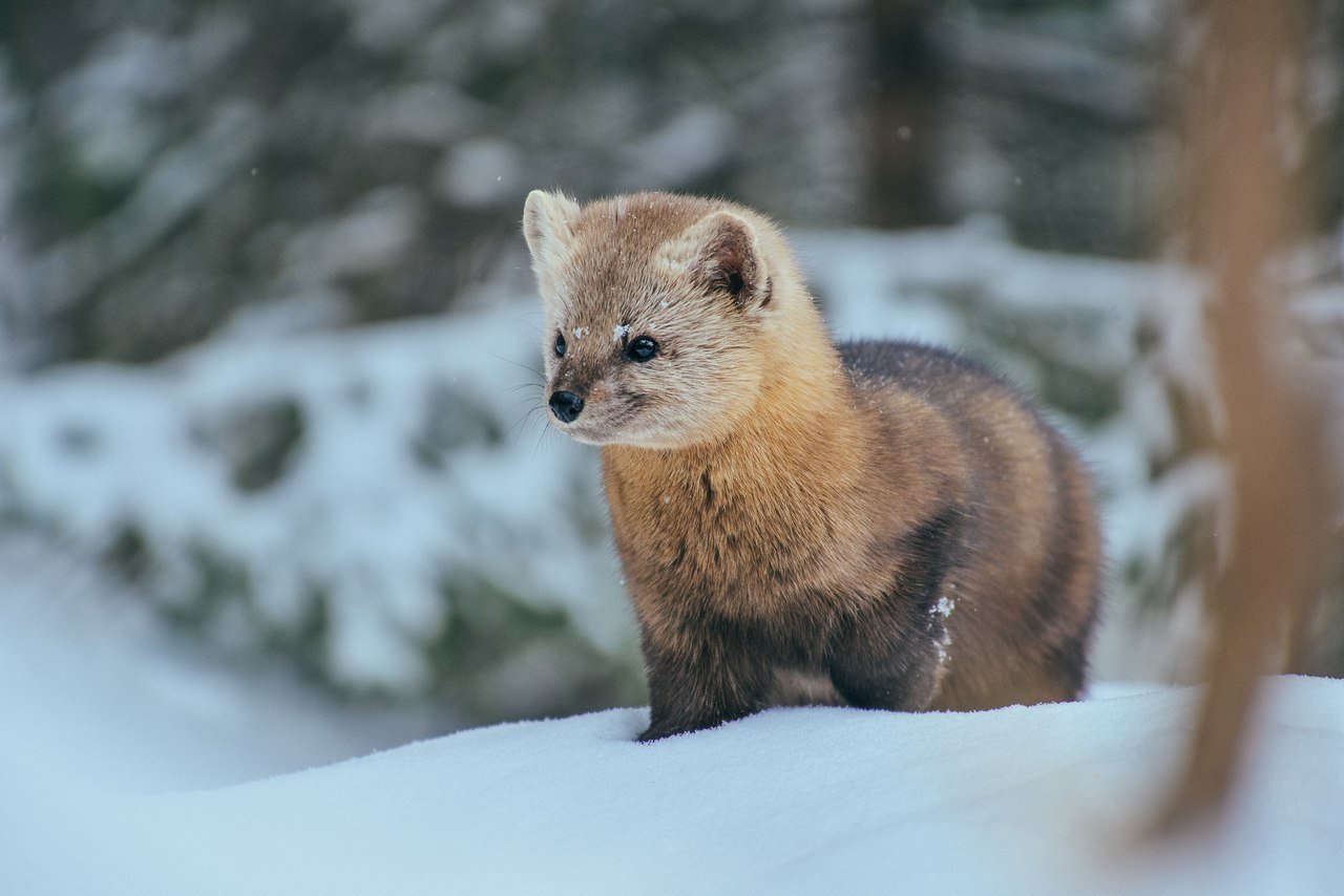Лесная куница зимой