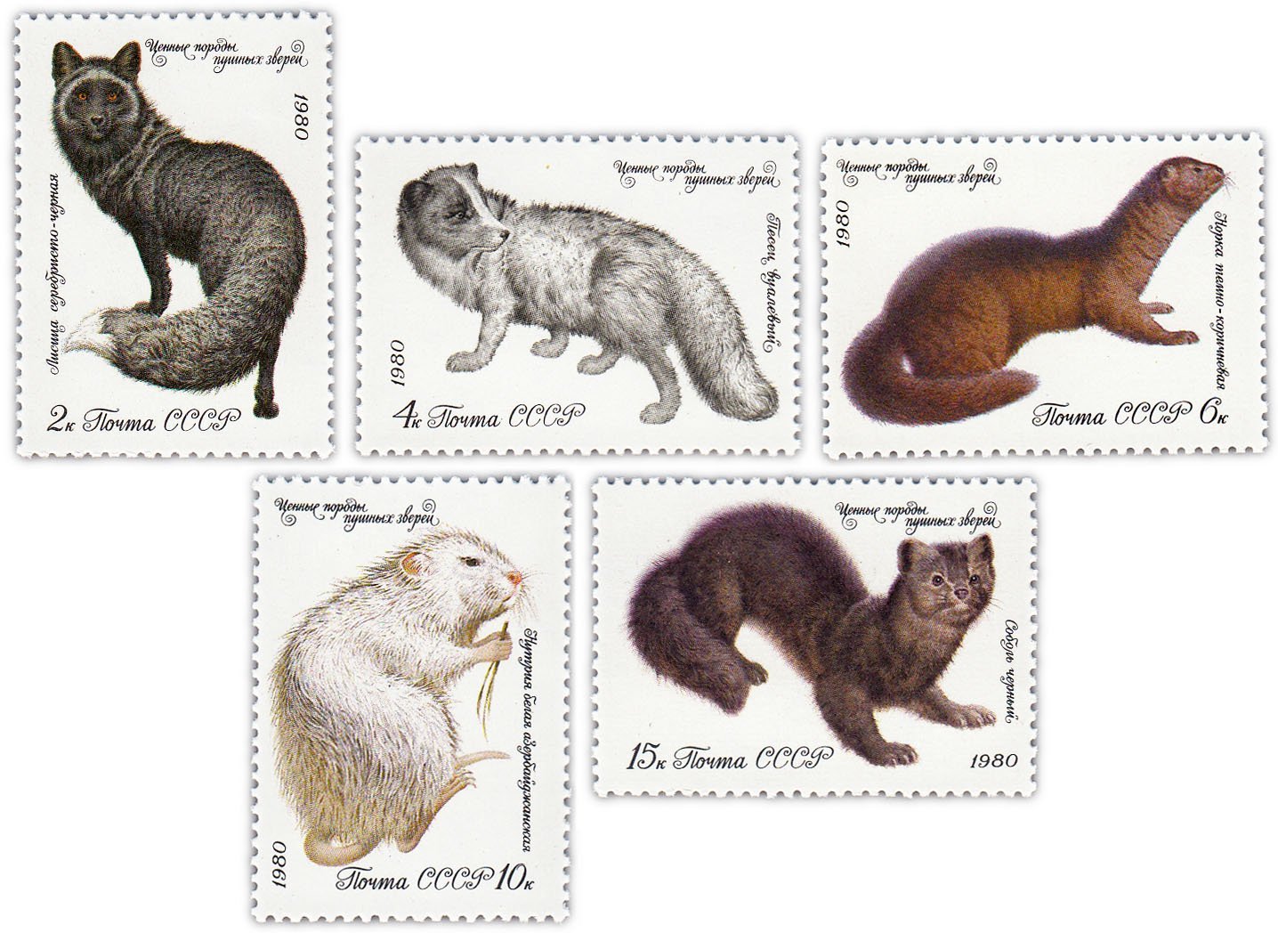 Почтовые марки ценные породы пушных зверей 1980