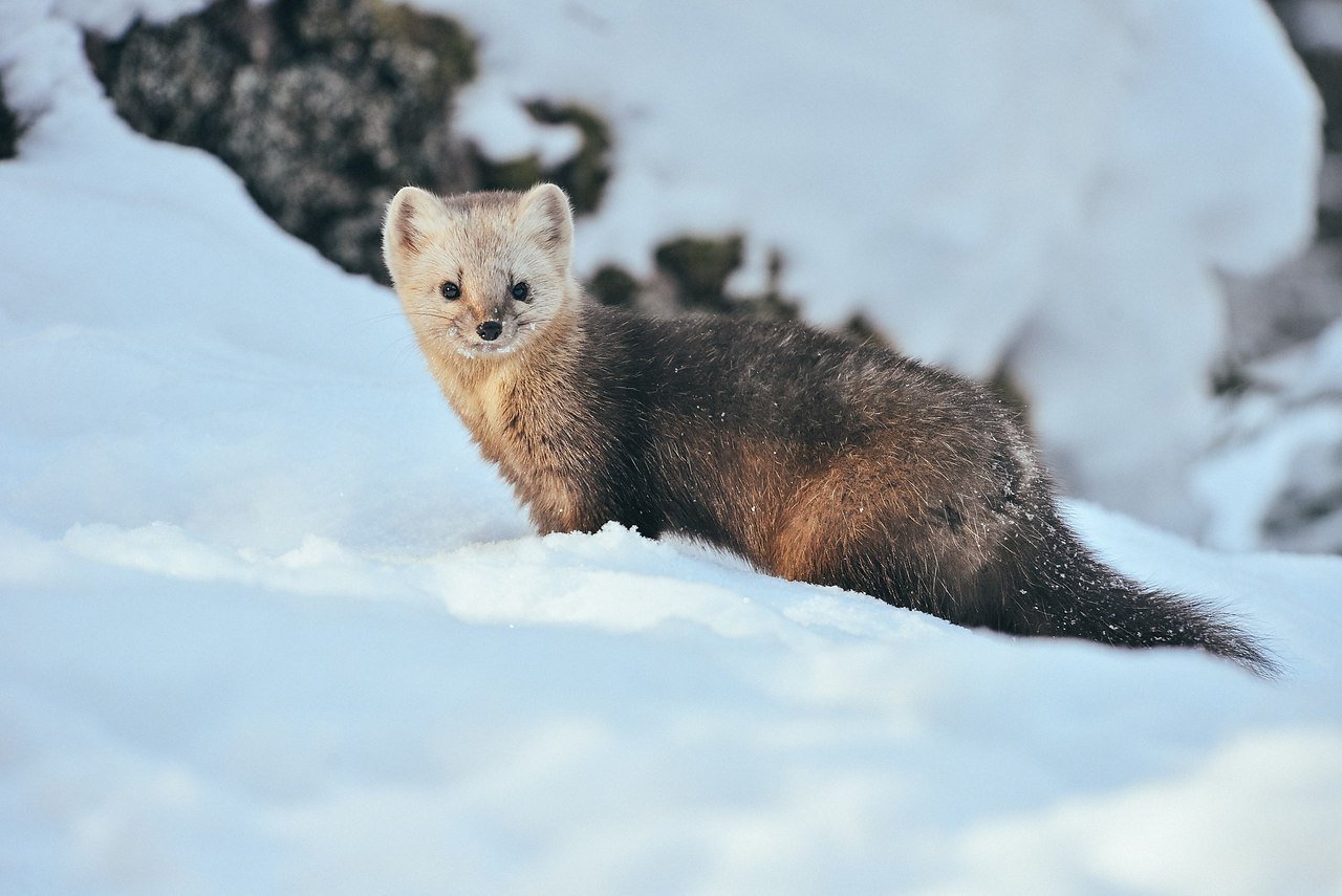 Соболь в снегу