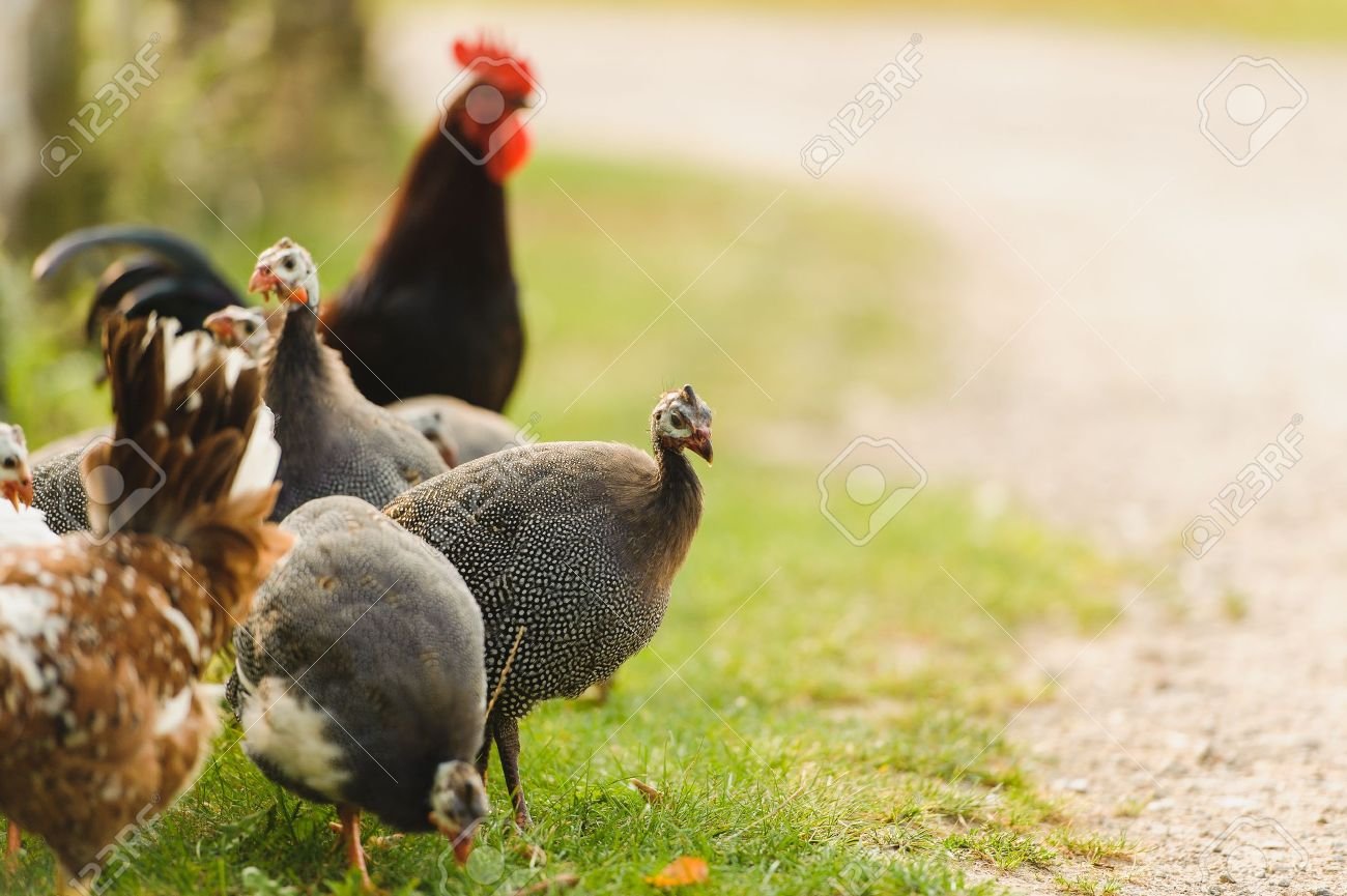 Цесарки куры гуси