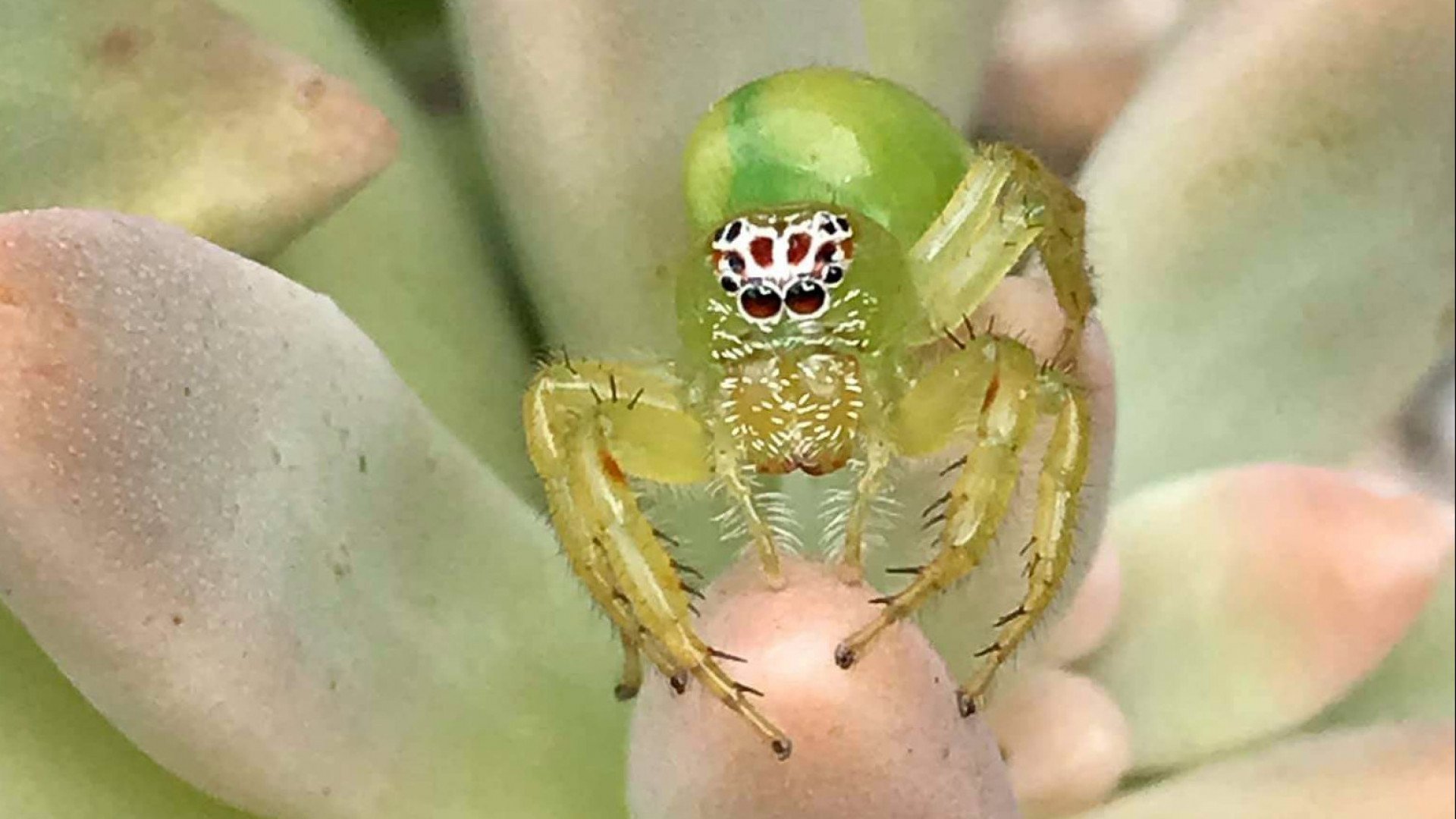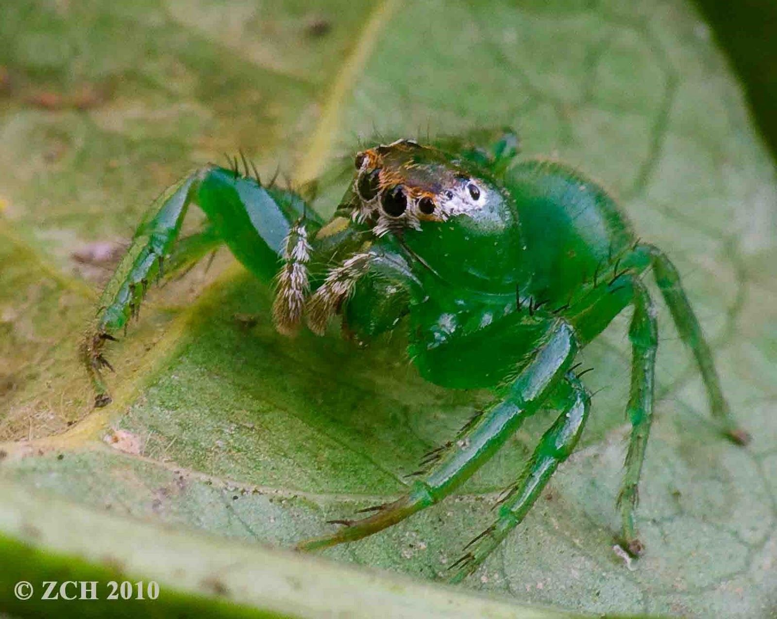 Скакун зеленый зеленый паук