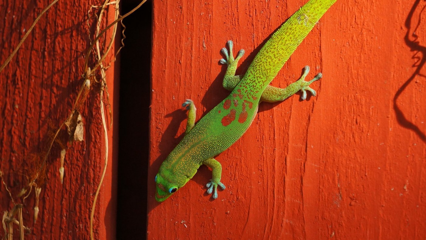 Геккон ползет по стене