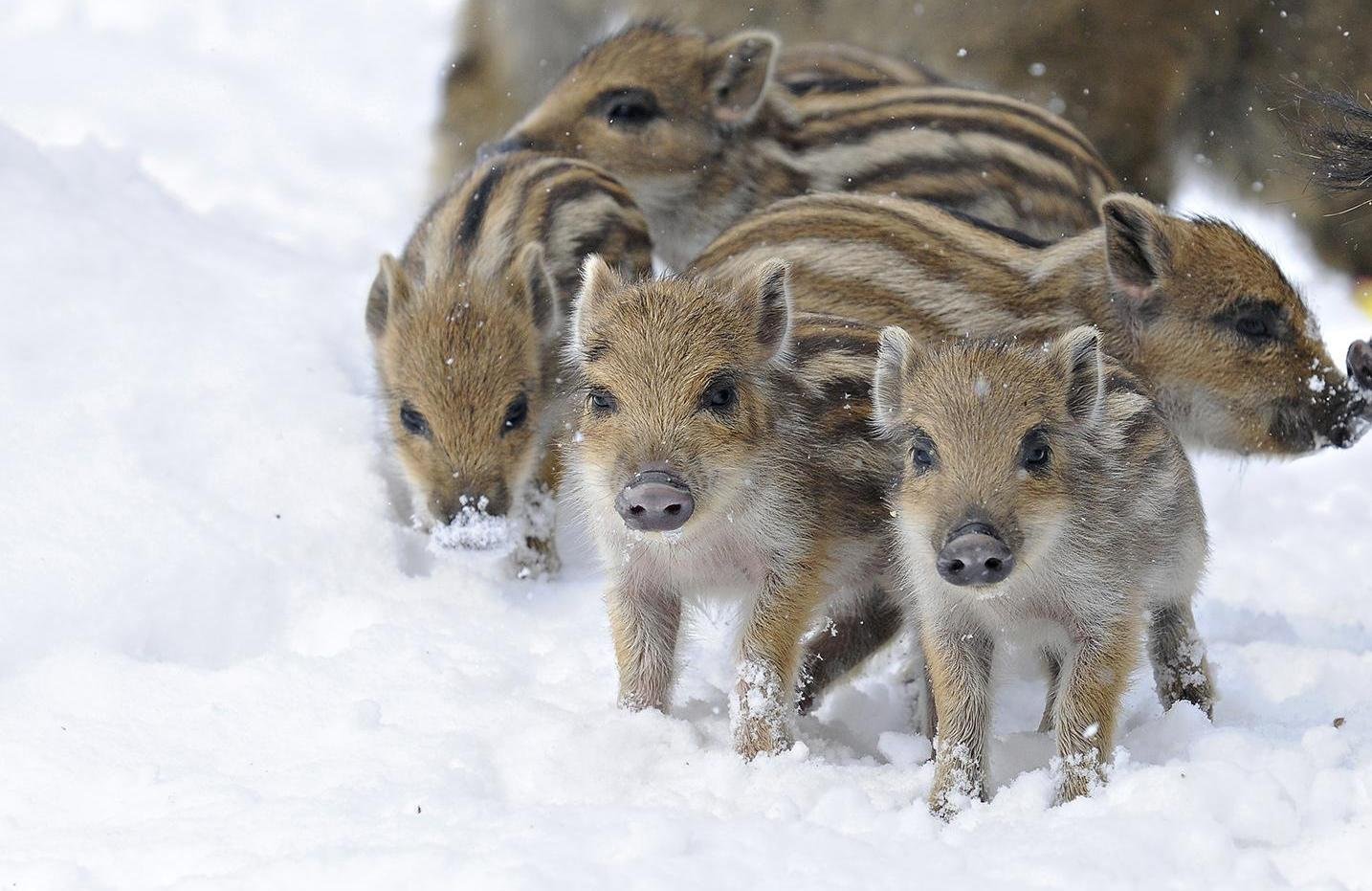 Маленькие кабанята зимой