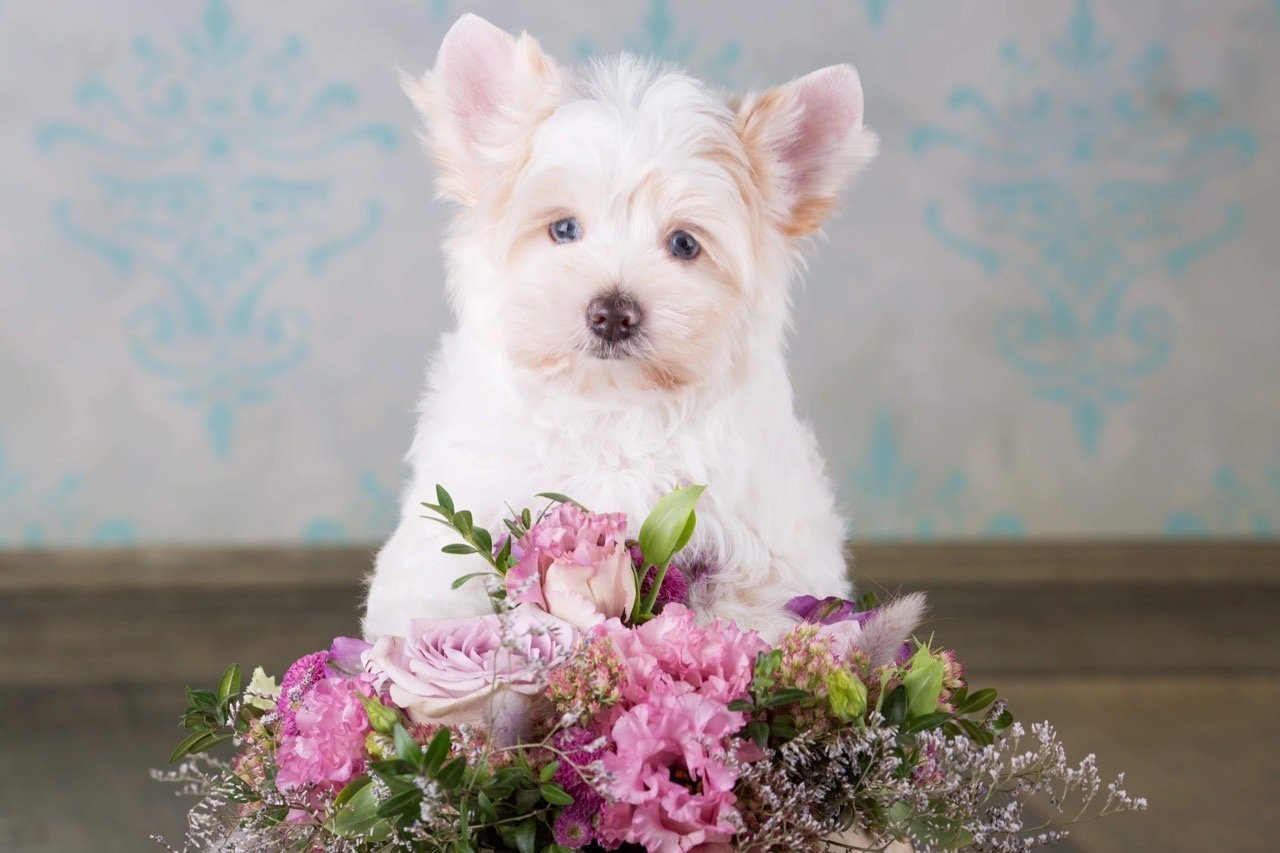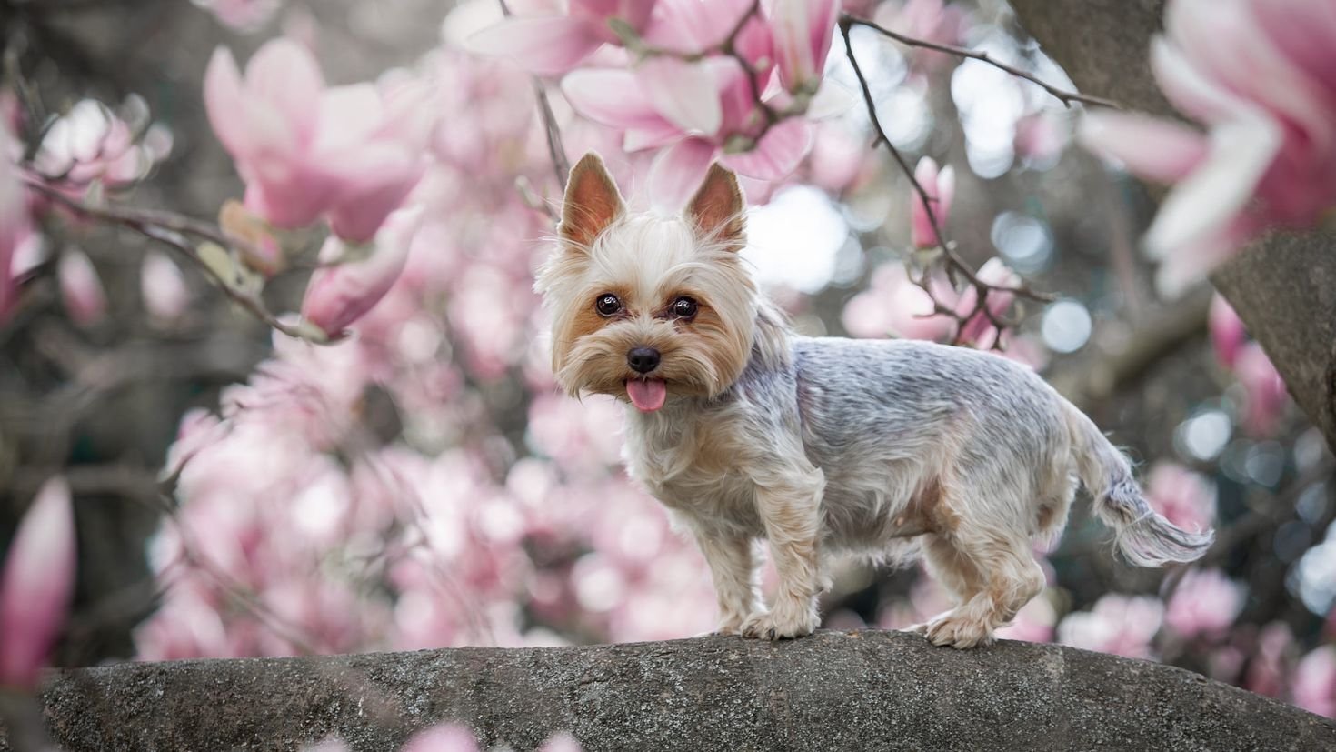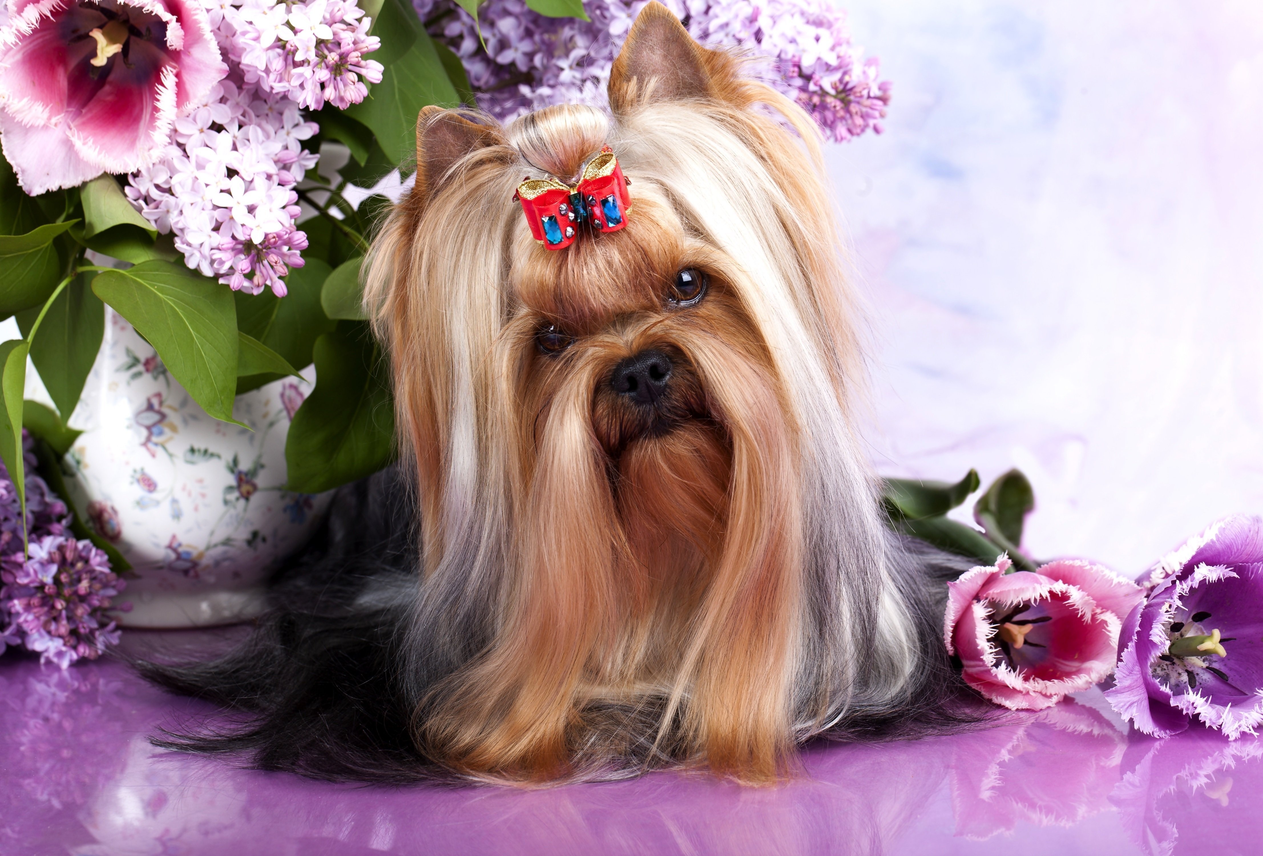 Йоркширский терьер и цветы