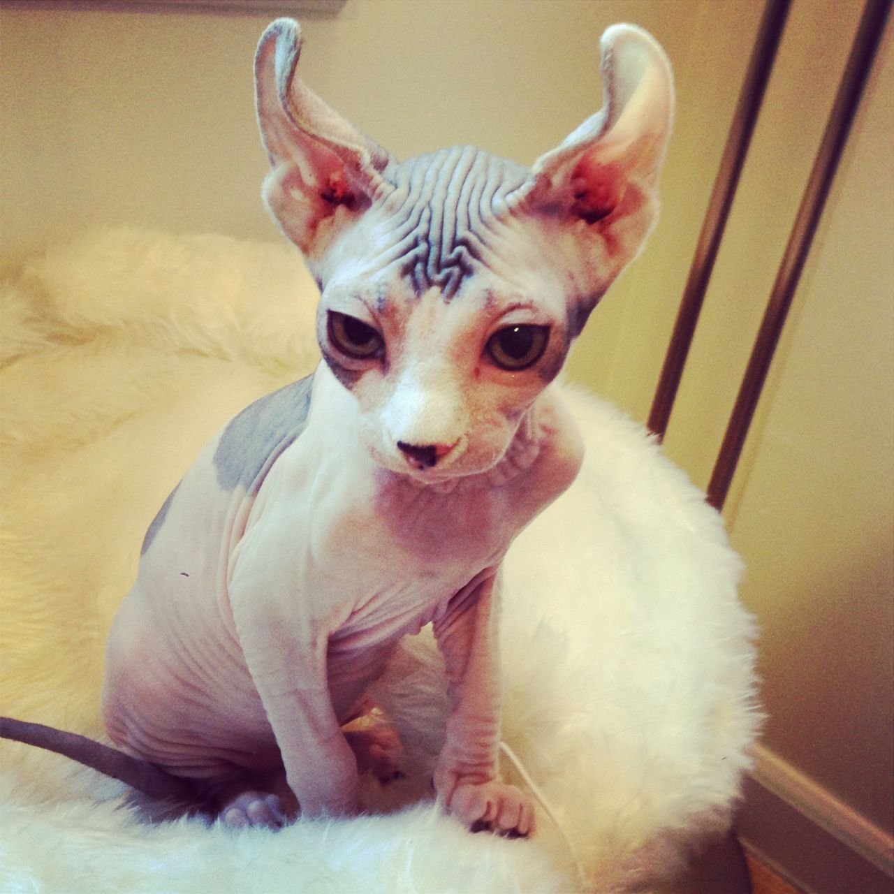 Лысая кошка сидит