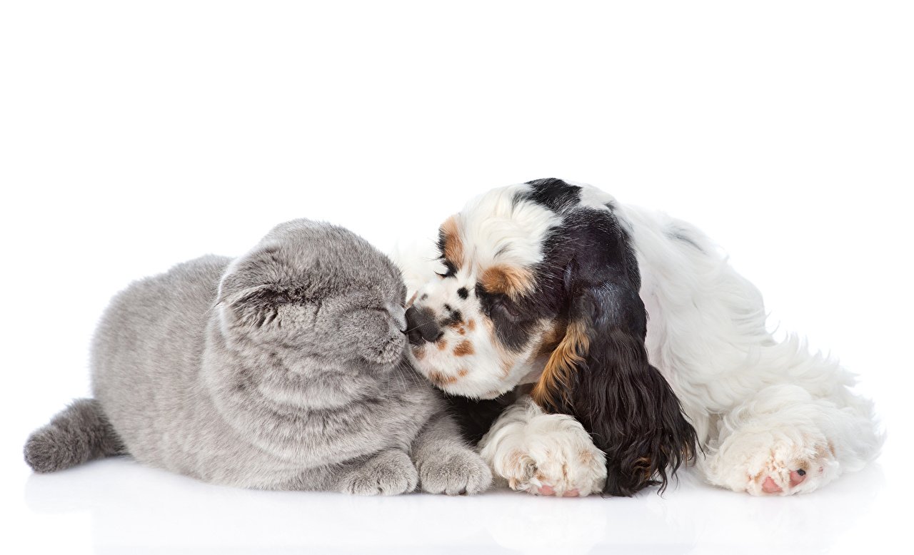 Кошка и собака на белом фоне
