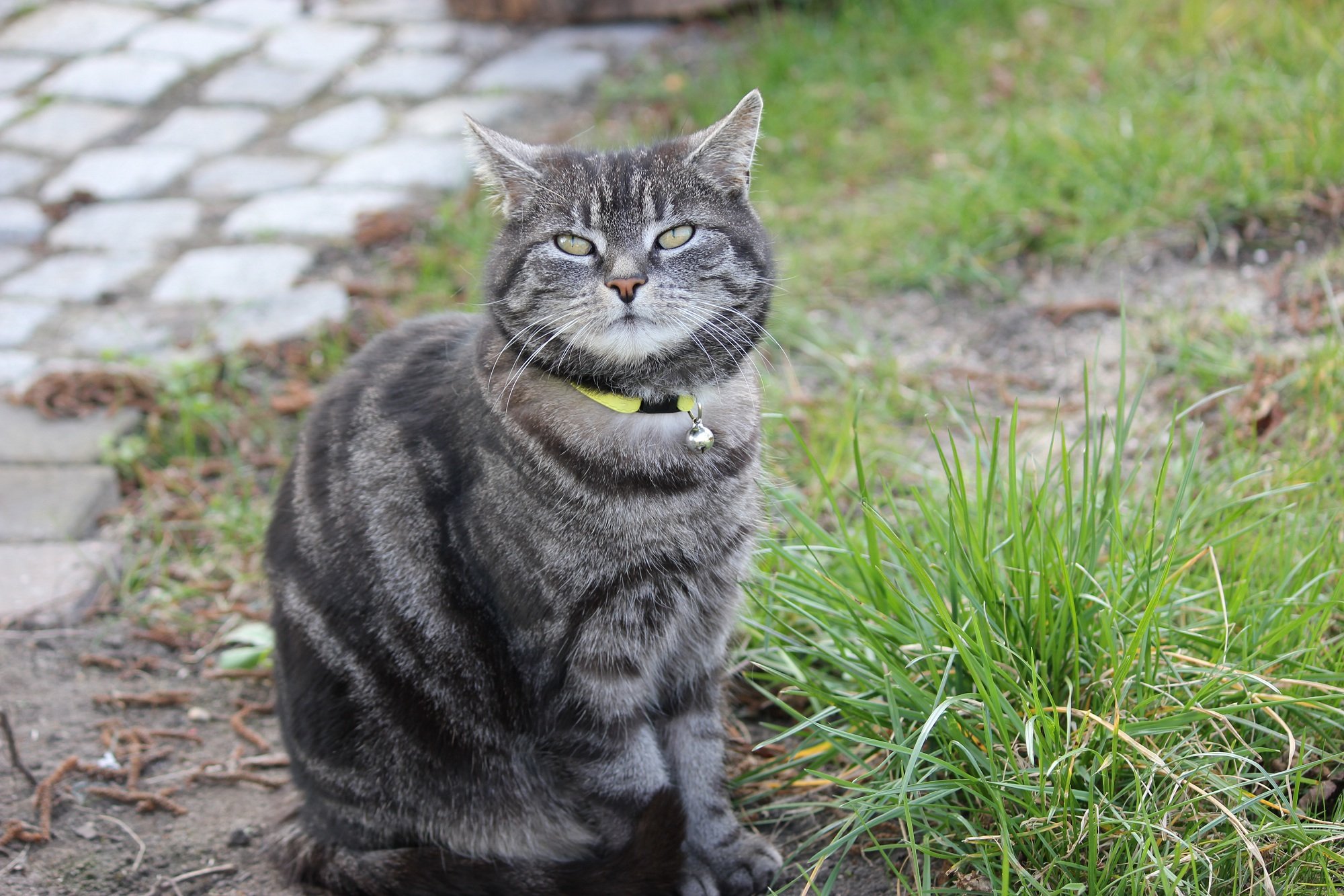 Серая полосатая упитанная кошка