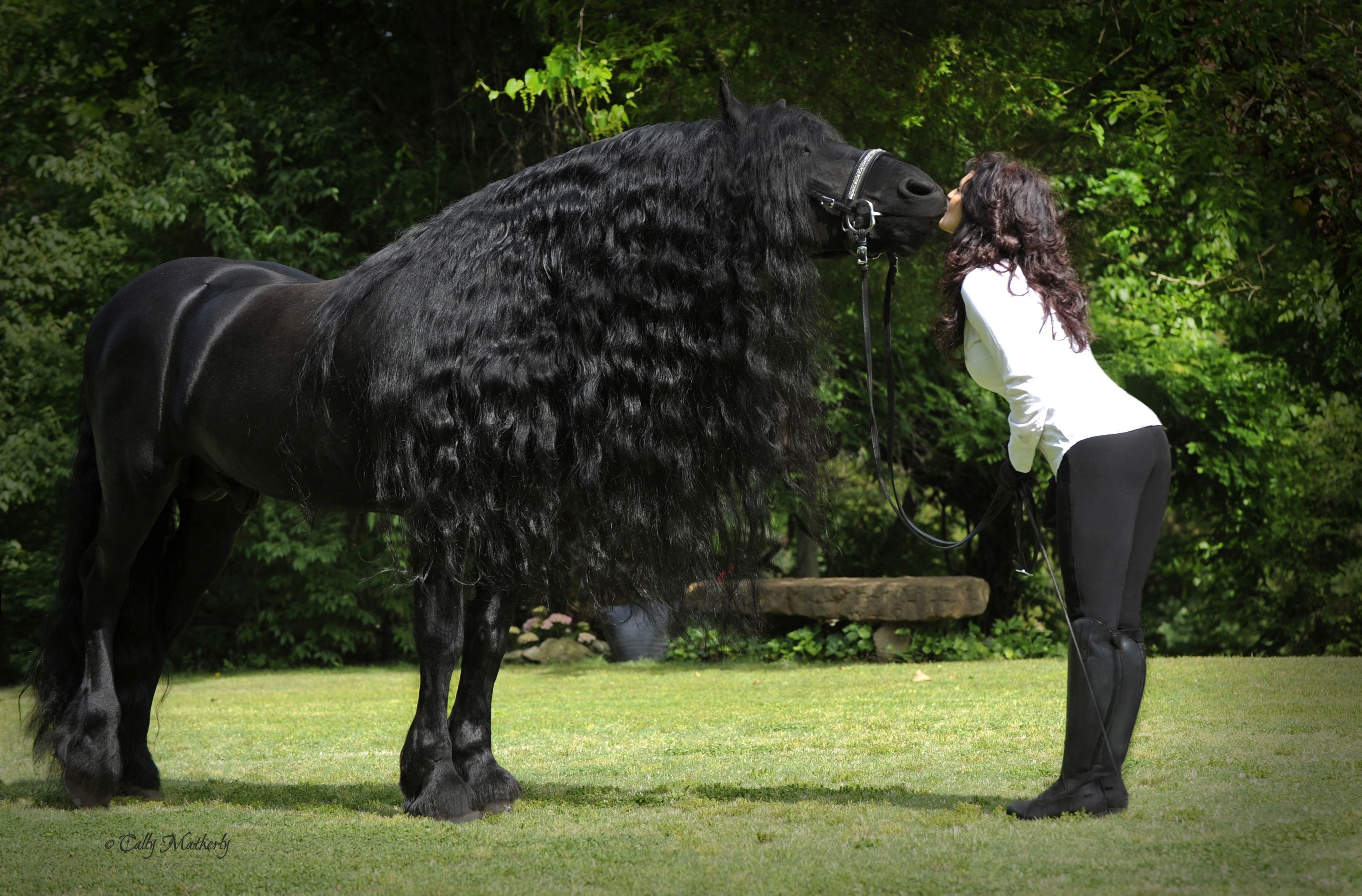Фризская лошадь Фридрих Великий с девушкой