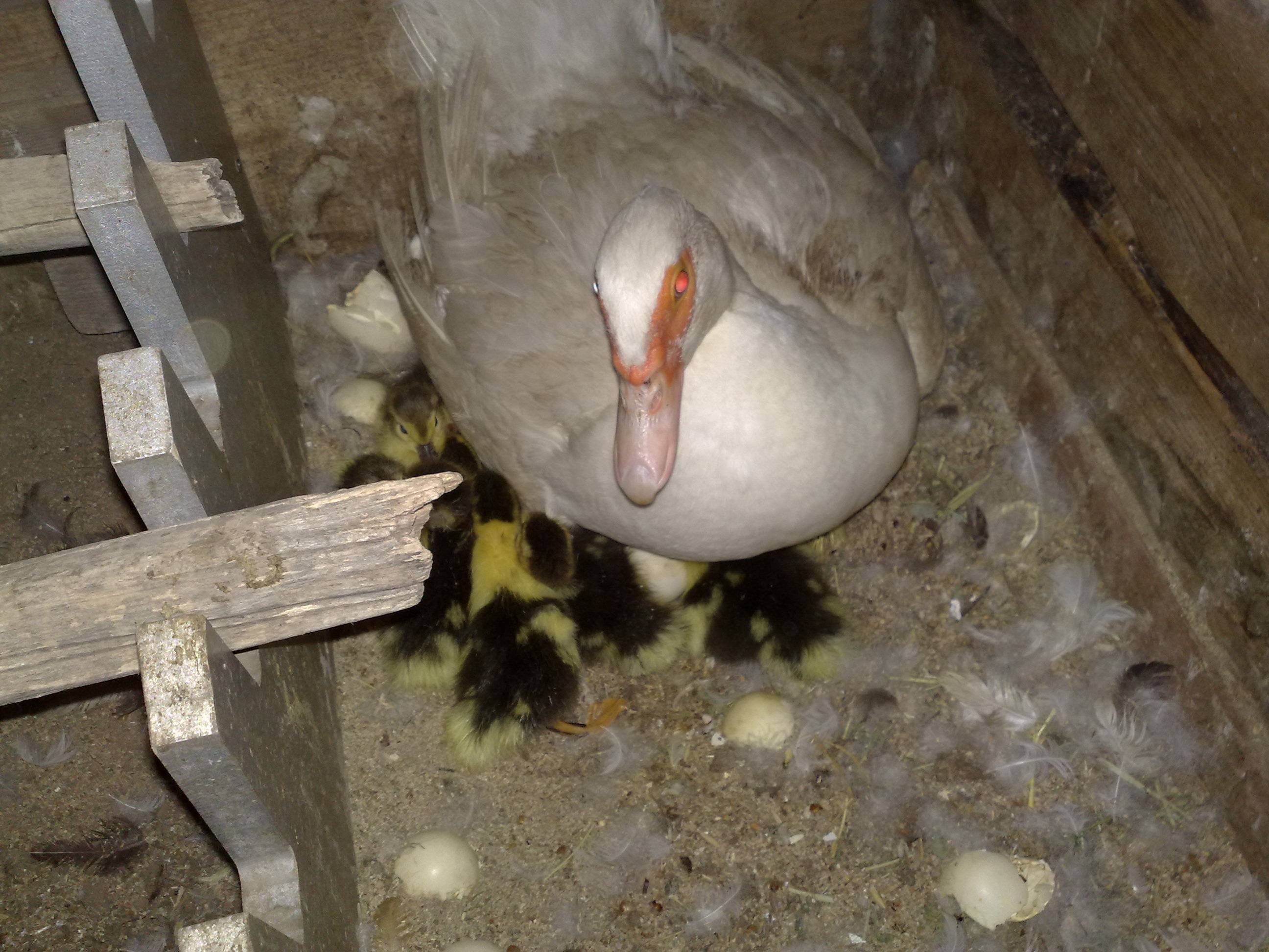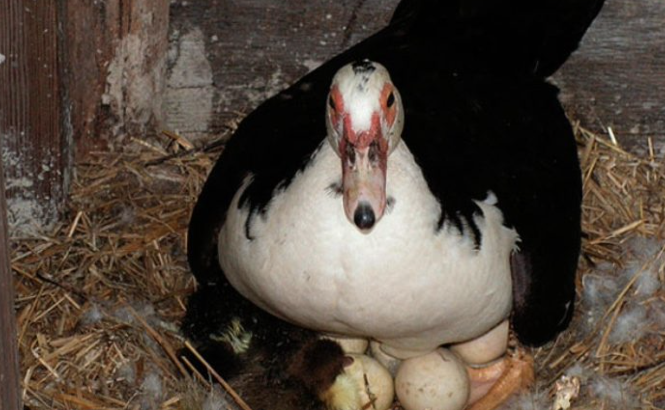 Индоутка высиживает яйца