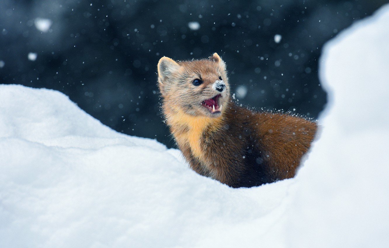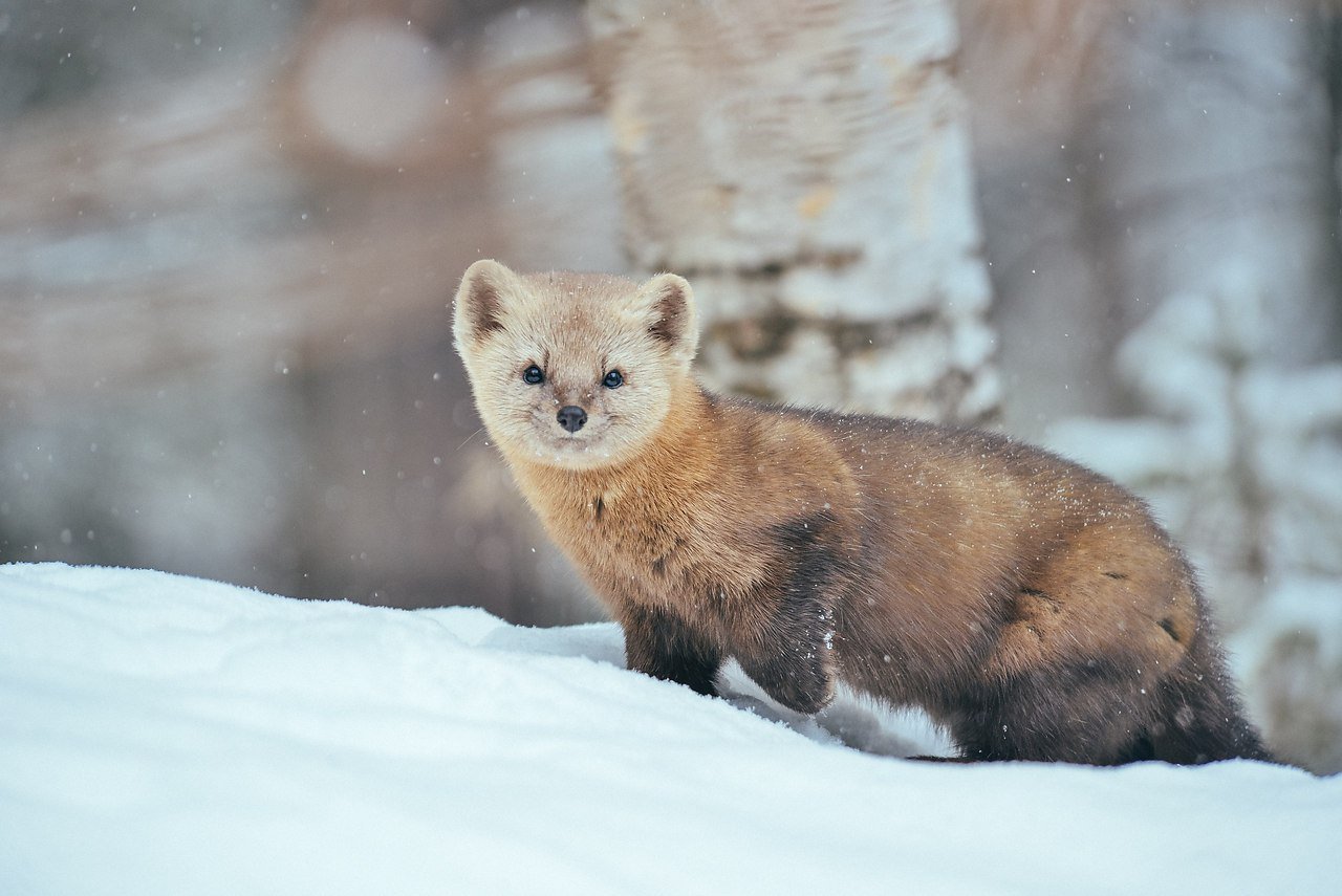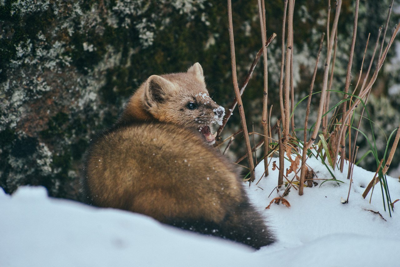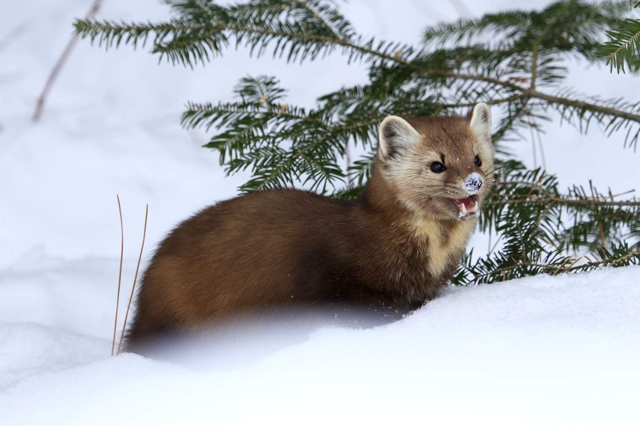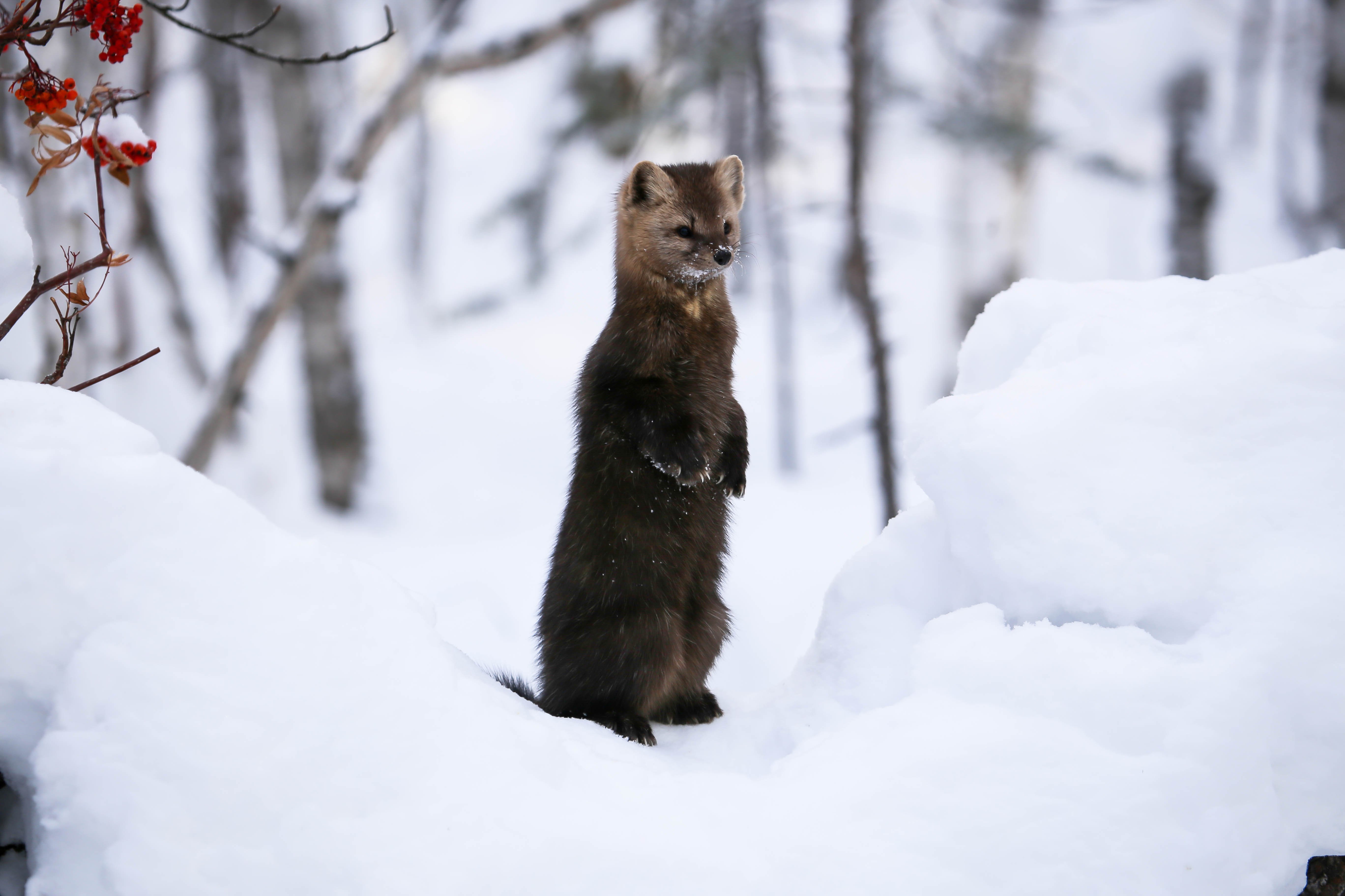 Лесная куница зимой