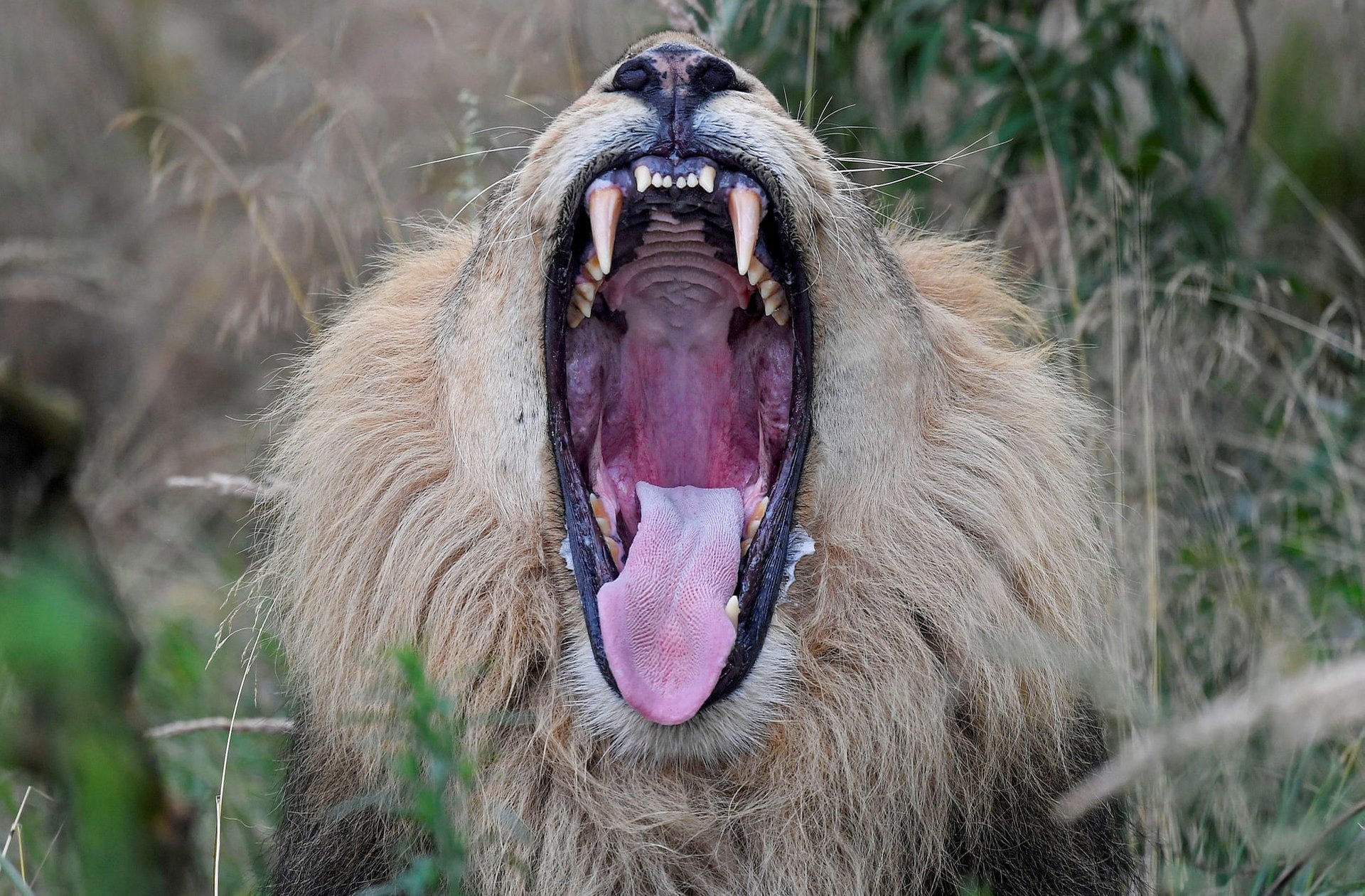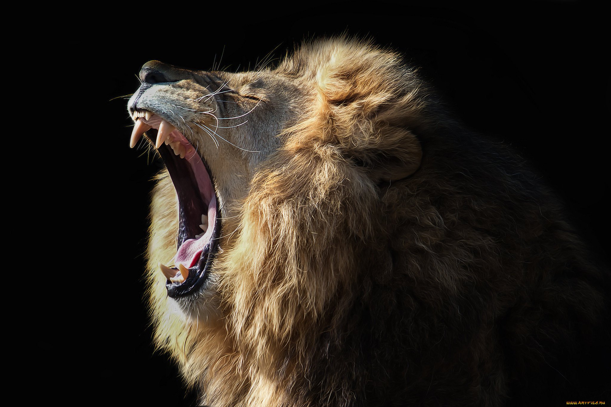 Лев с открытой пастью