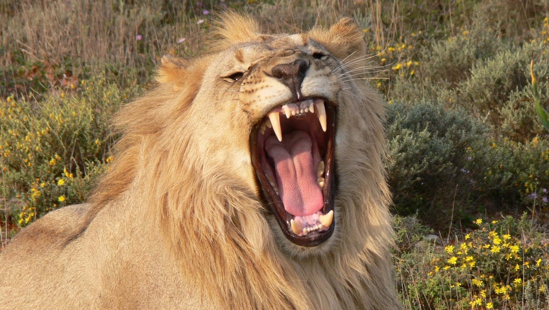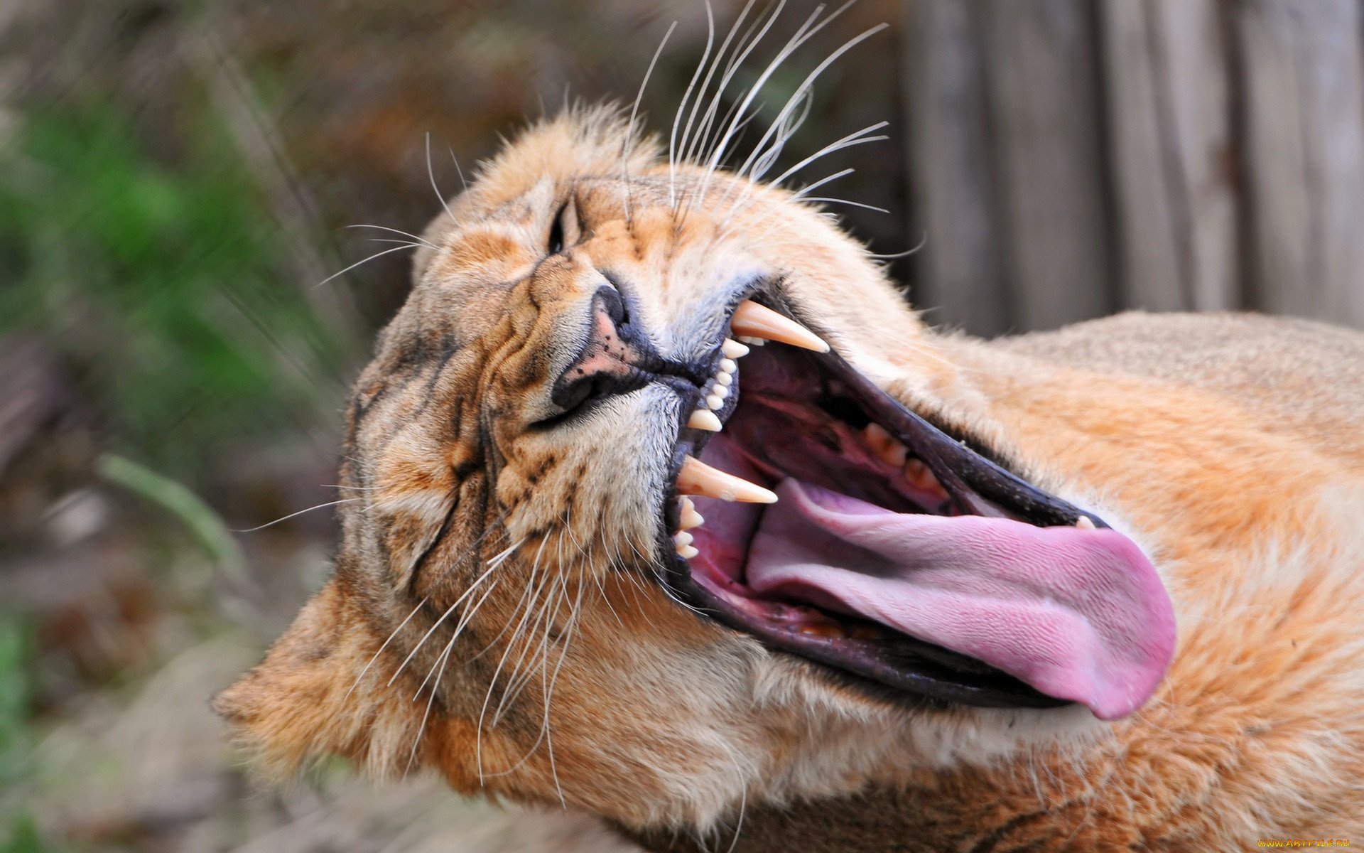 Лев зевает