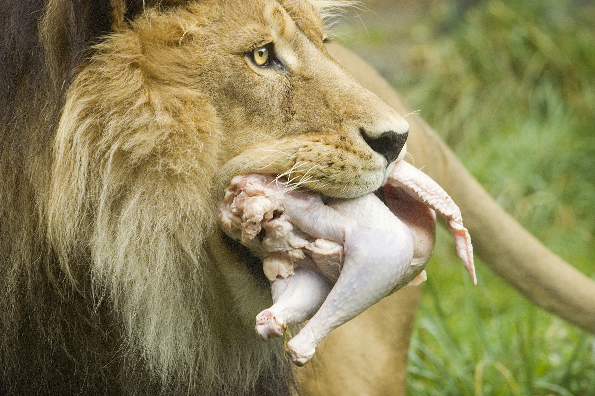 Лев держит в зубах